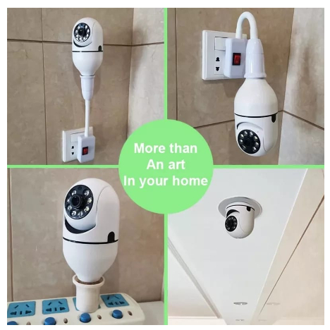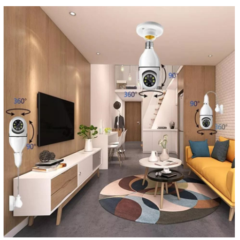 Câmera Wifi IP Sem Fio Giratória 360 Com Encaixe Lampada Bocal Rosca Ptz Full HD Visão Noturna Segurança E27