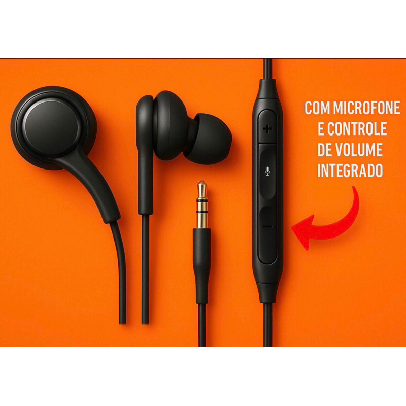 🎧 Fone de Ouvido com Fio Reforçado - Alta Qualidade e Graves com Microfone o