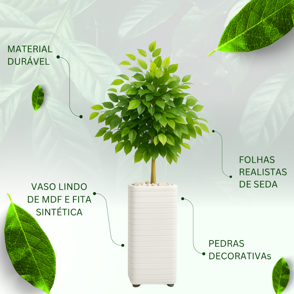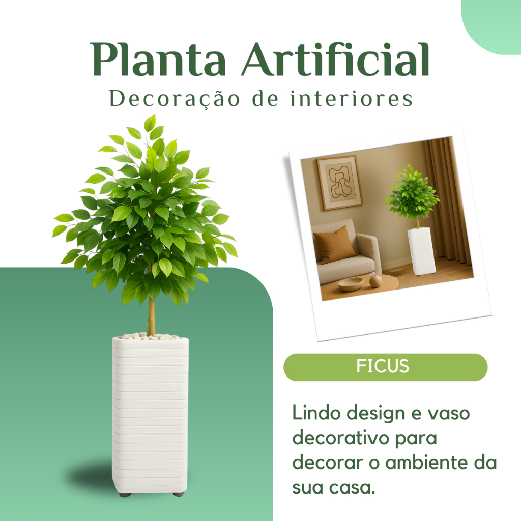 Planta Artificial Kit Decoração Enfeite Sala Escritório Com Vaso