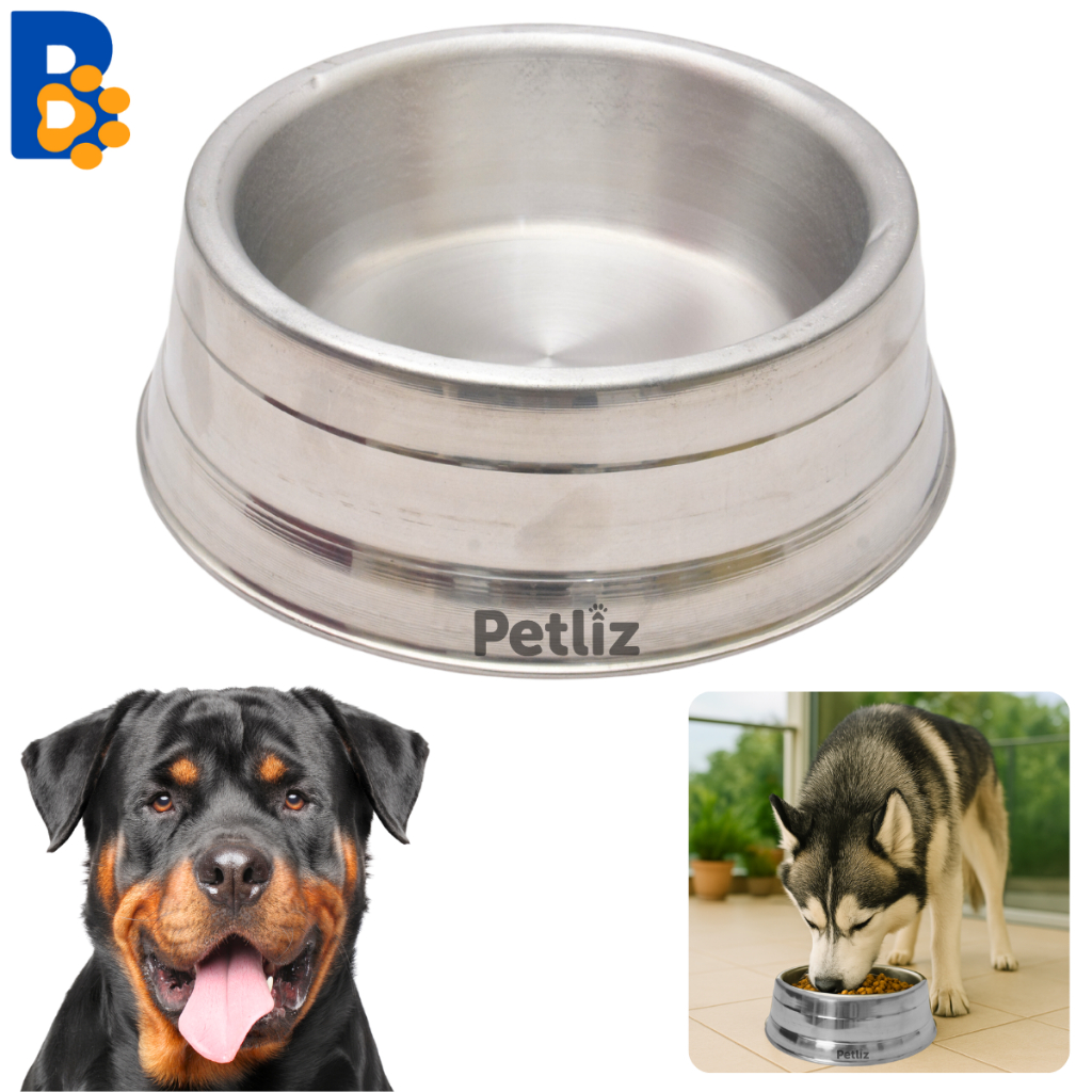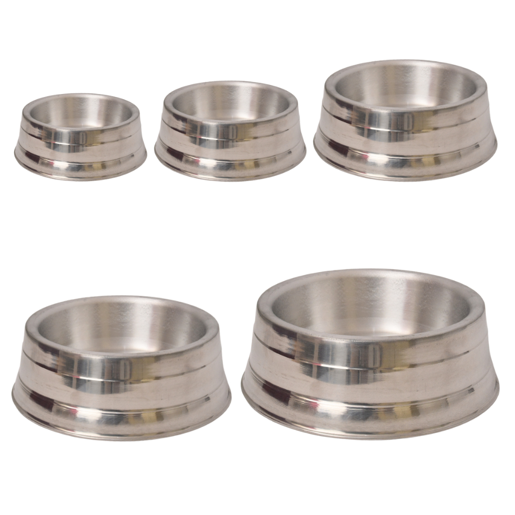 Comedouro Pesado Polido de Alumínio Para Cães Pote De Ração Resistente