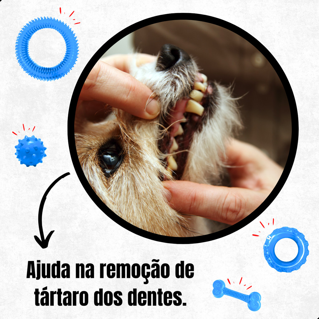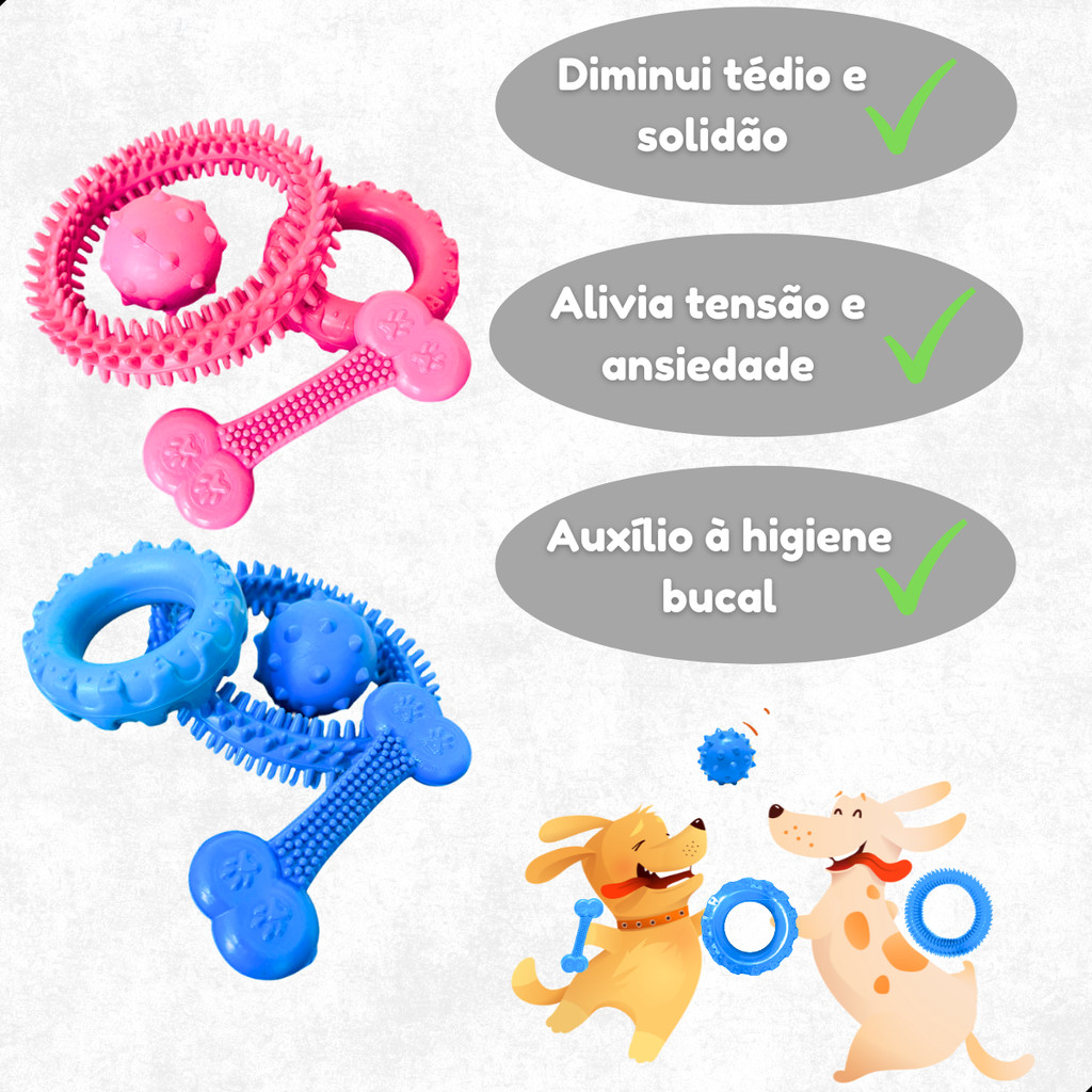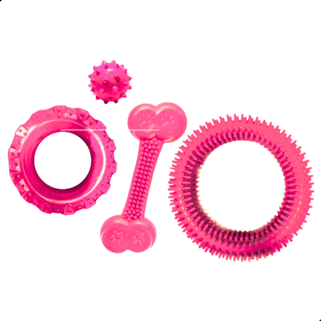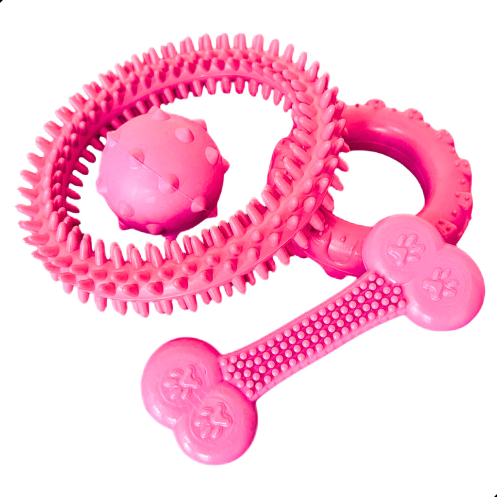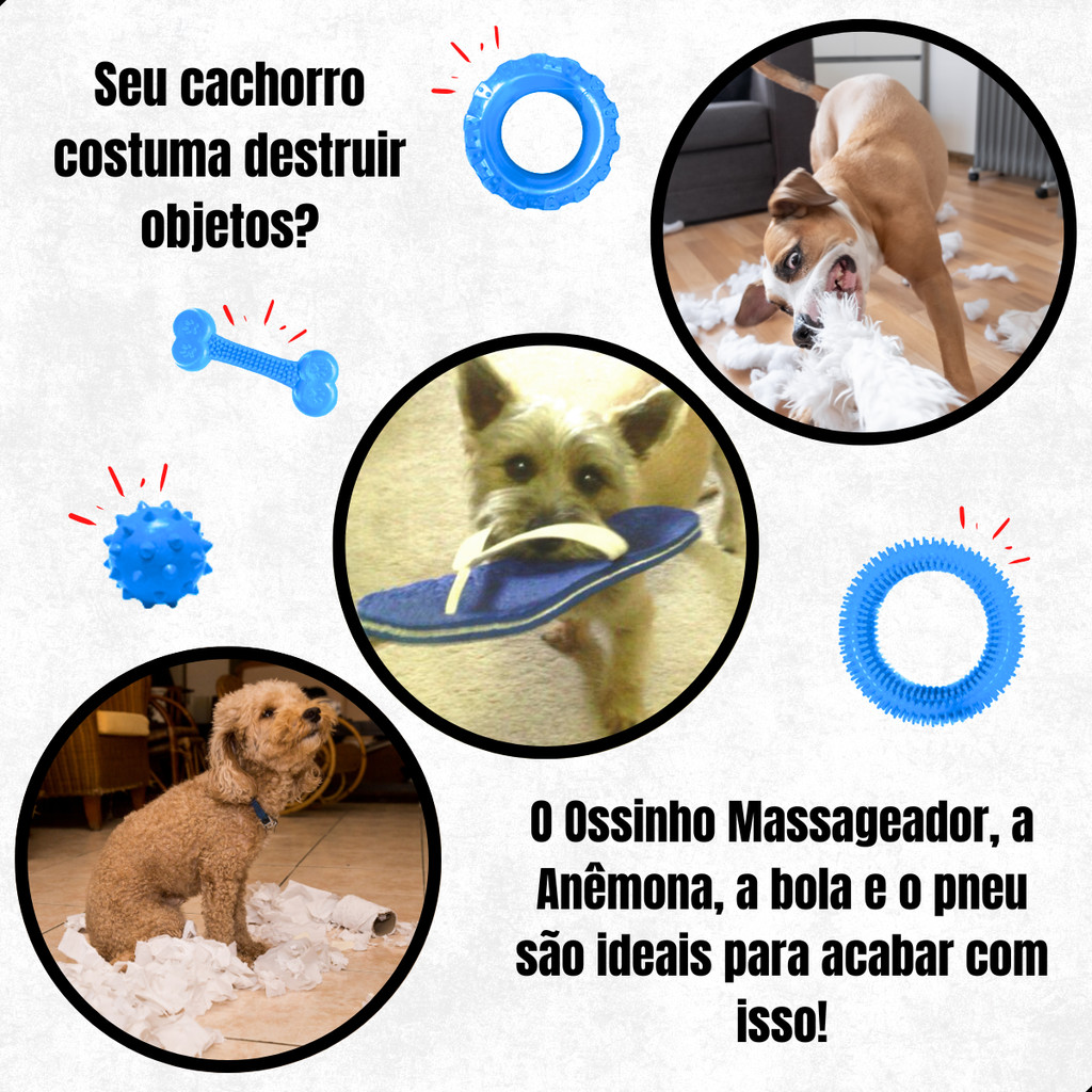 Kit Brinquedos para Cachorro Mordedor de Borracha Maciço Resistente Anêmona, Pneu, Bola e Osso