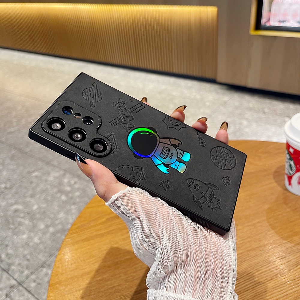 Luxo Spaceman Couro Para Samsung Galaxy S25 S24 S23 S22 S21 Ultra Plus Caso Fosco Macio Allround Câmera Capa Escudo