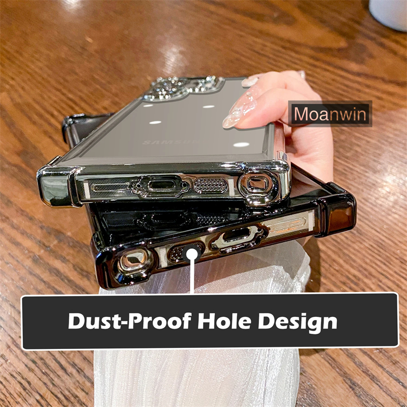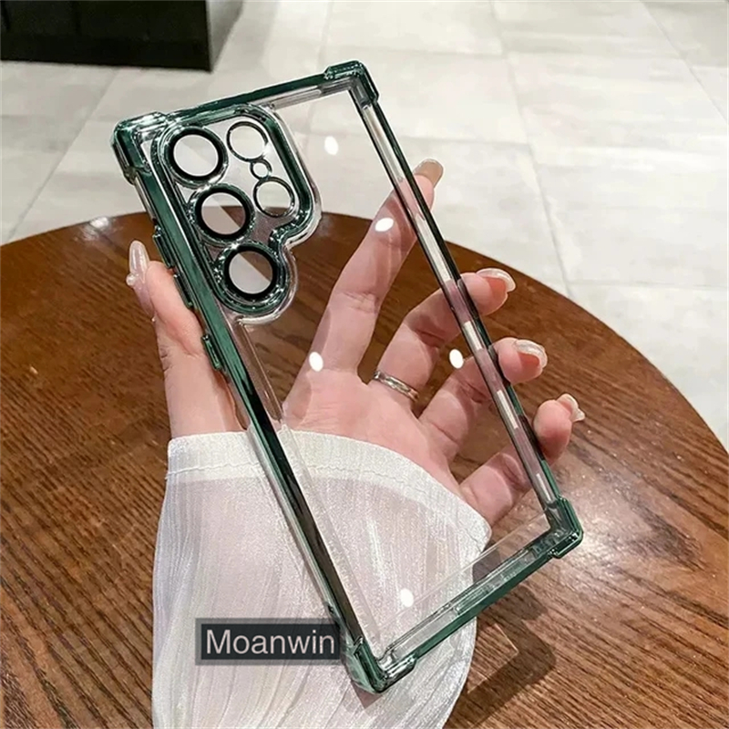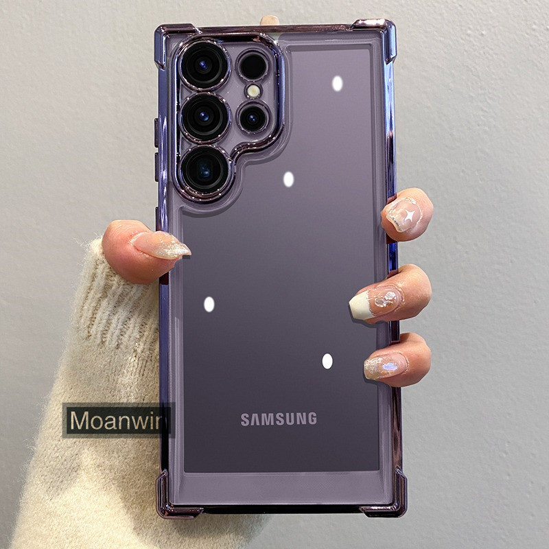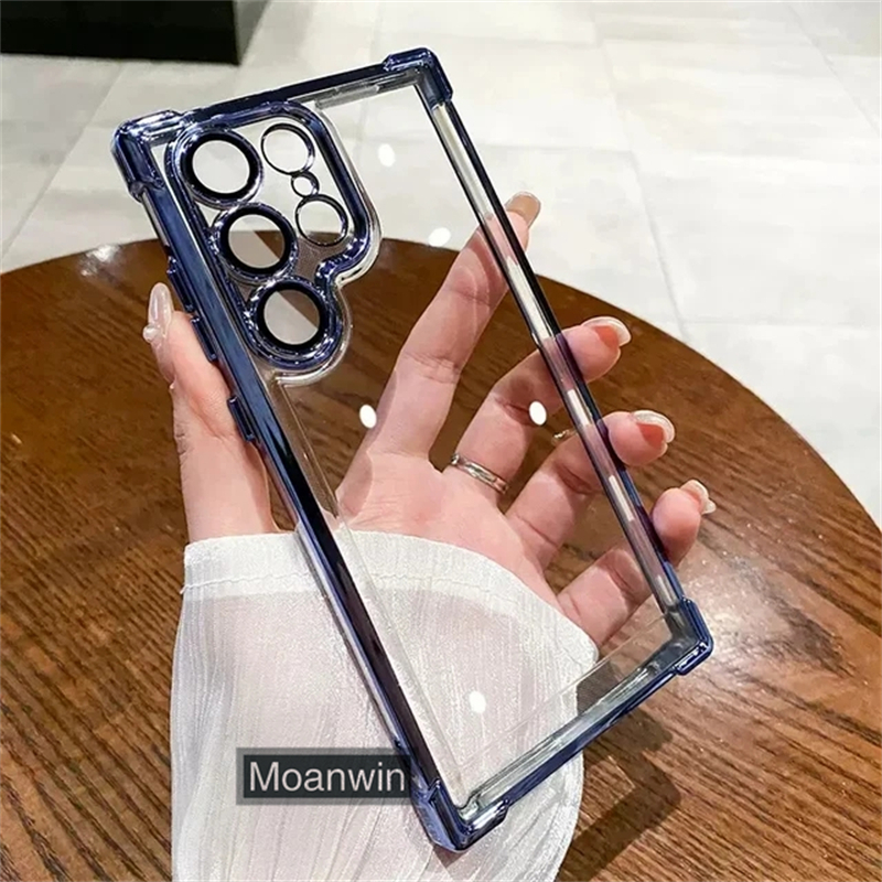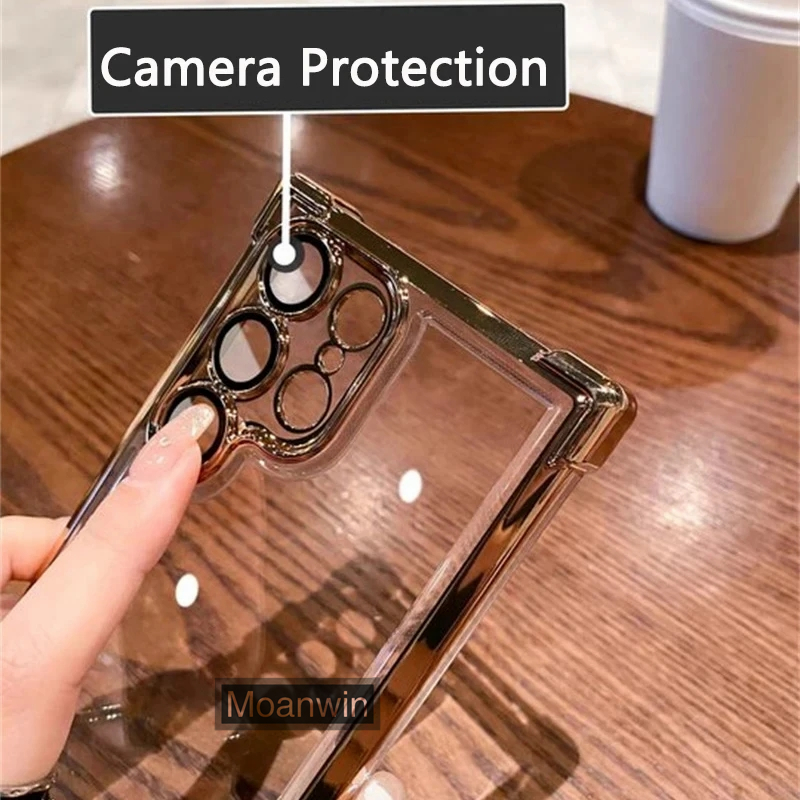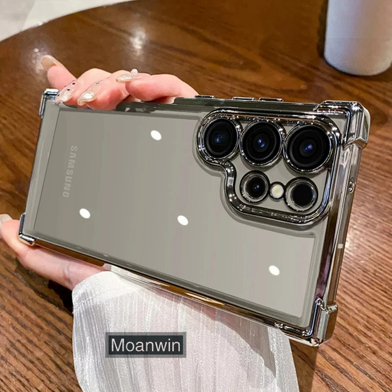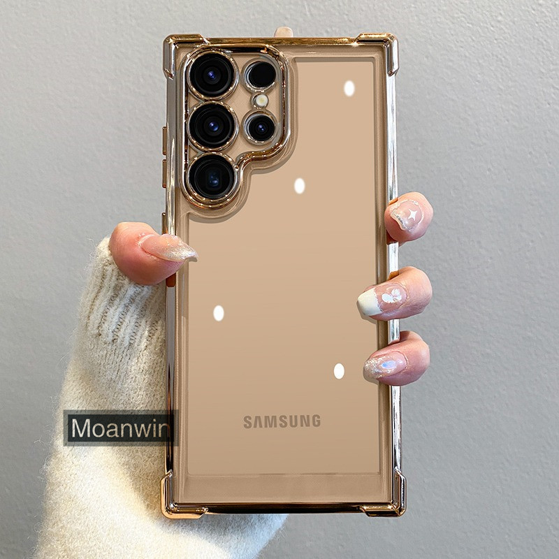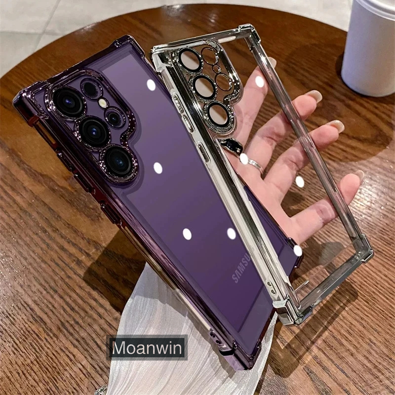Luxo Galvaniza Transparente Caso De Telefone Para Samsung Galaxy S22 S23 S24 S25 Ultra Plus FE Pára-Choques À Prova De C