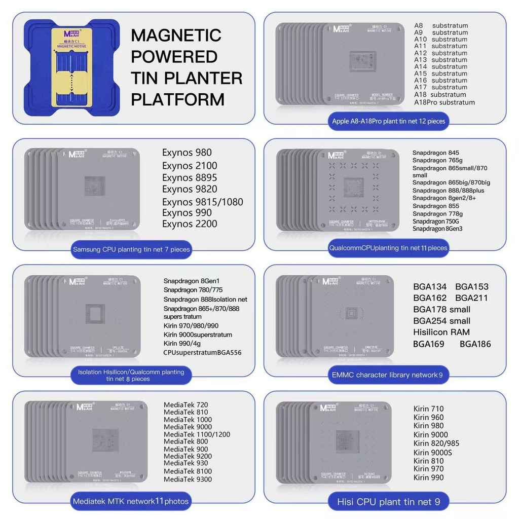 Plataforma De Plantio De Estanho MAant C1 Para iPhone A8-A17 QUALCOMM HS EMMC CPU De Placa-Mãe De Soldagem BGA Conjunto De Ferramentas Stencil