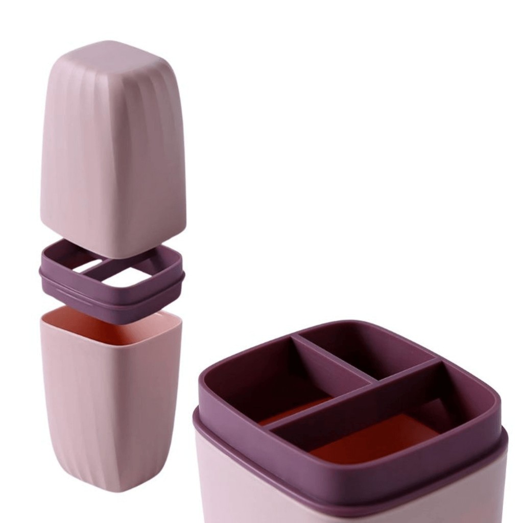 Porta Escova de Dente Com 3 Divisórias E Tampa Para Uma Rotina De Higiene Perfeita