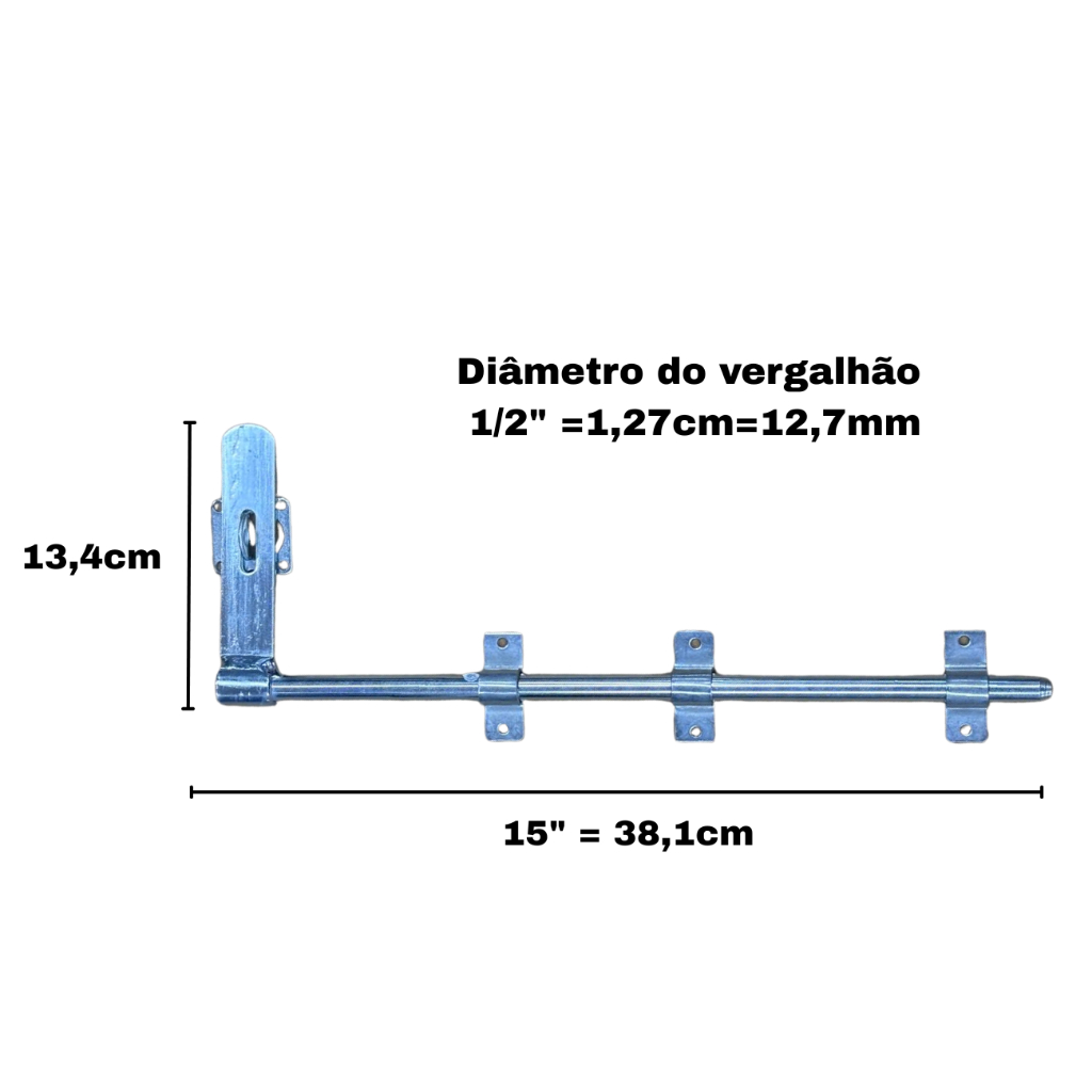 Ferrolho Trinco 1/2x15 Aço Reforçado para Portão kit 02 unidades