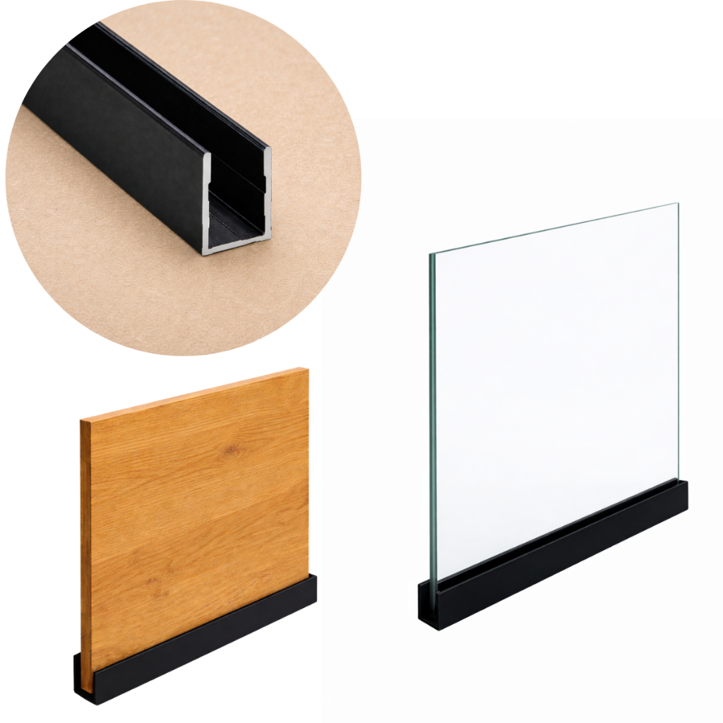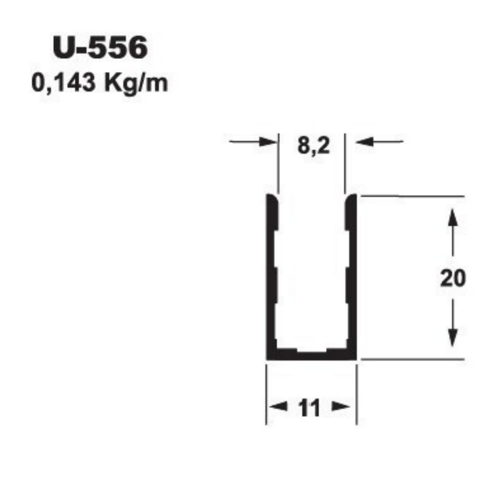 Perfil U De Alumínio Para Vidro de 8mm Madeira Reforçado Divisórias 1metro