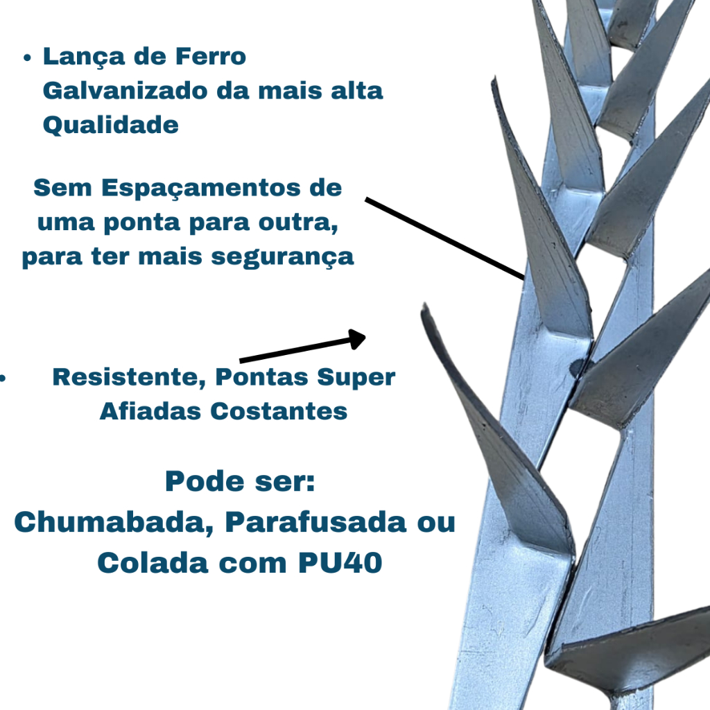 Lança Para Muro Mandíbula Perfurante Galvanizada Proteção Reforçada