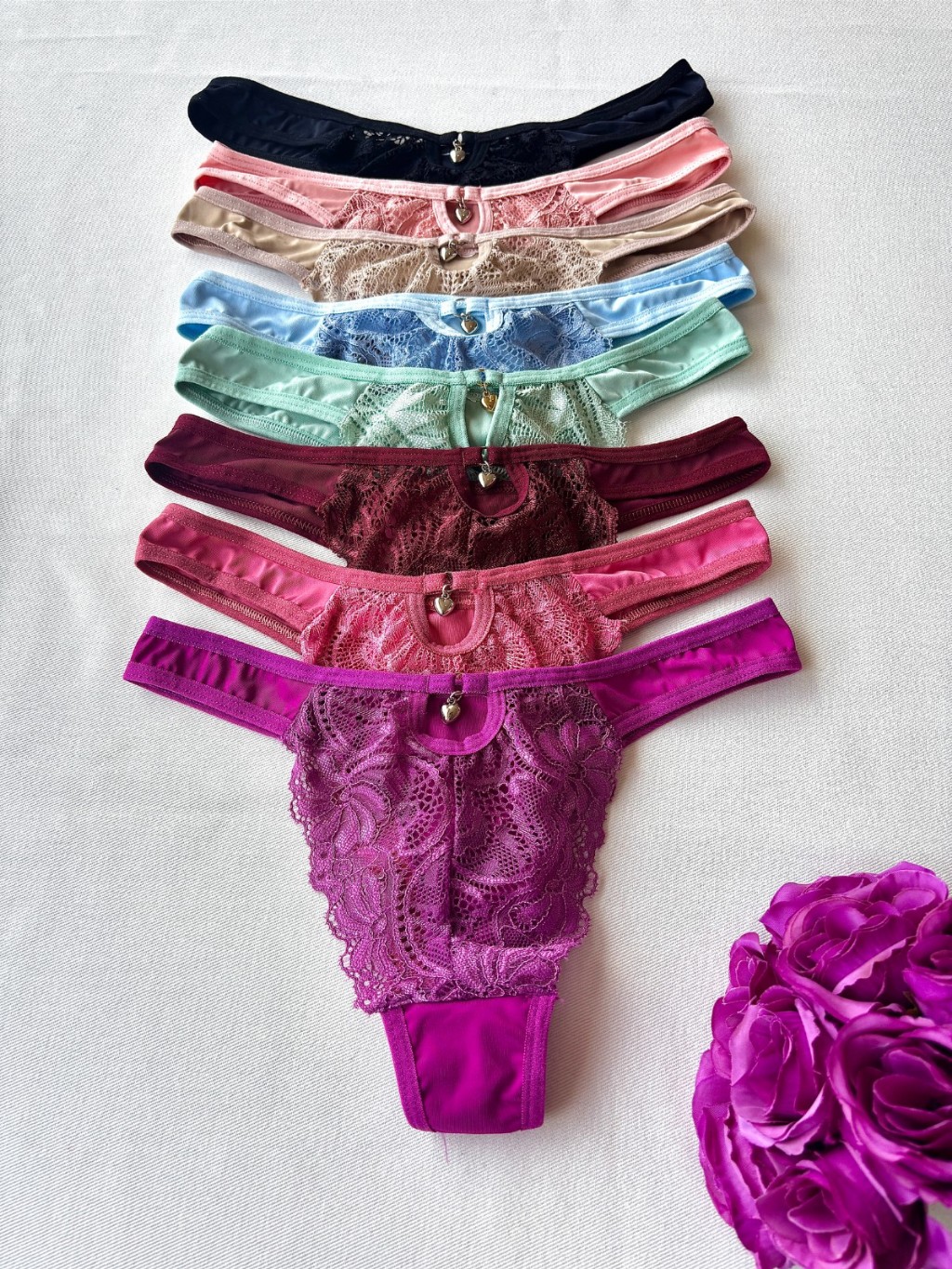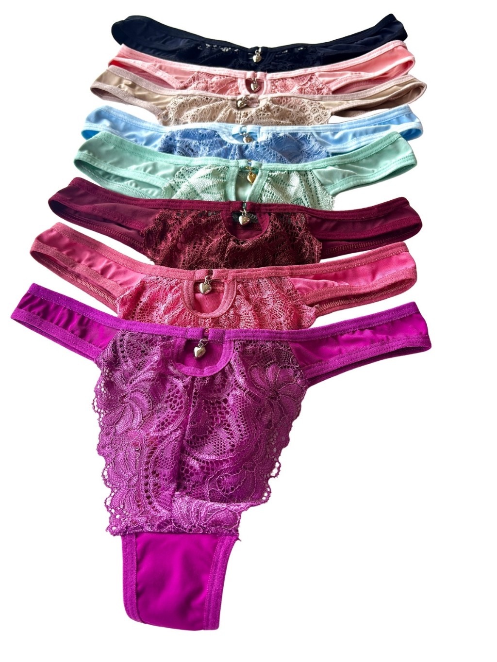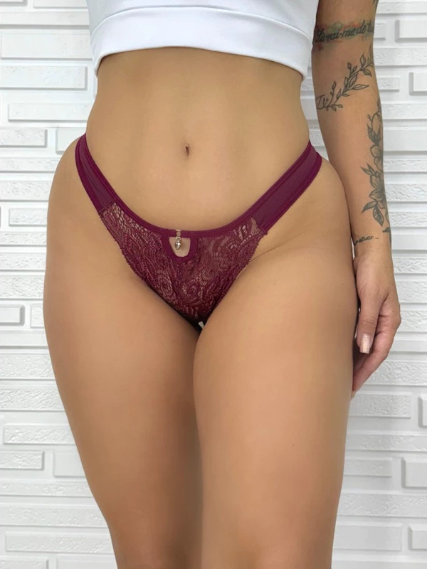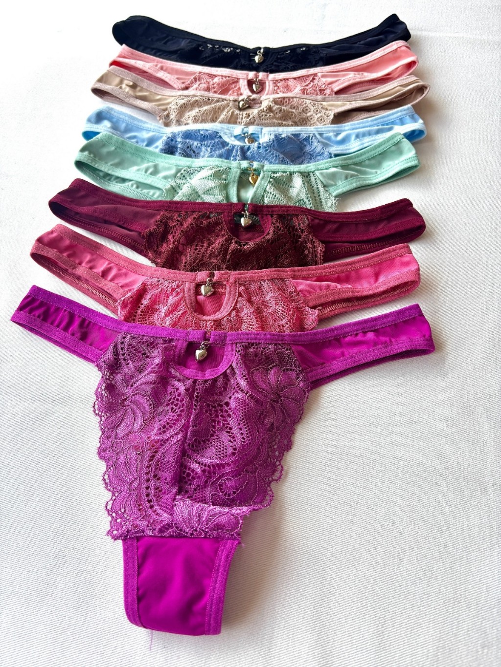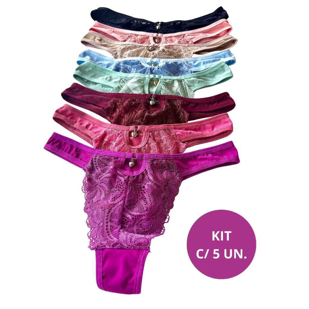 Kit Calcinha Fio Dental Rendada c/ Pingente Lingerie Sexy