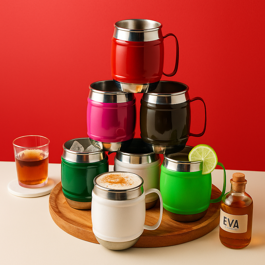 Kit Canecas Bojudas Pintada Alumínio 450ml Estilo Barril Varias Cores