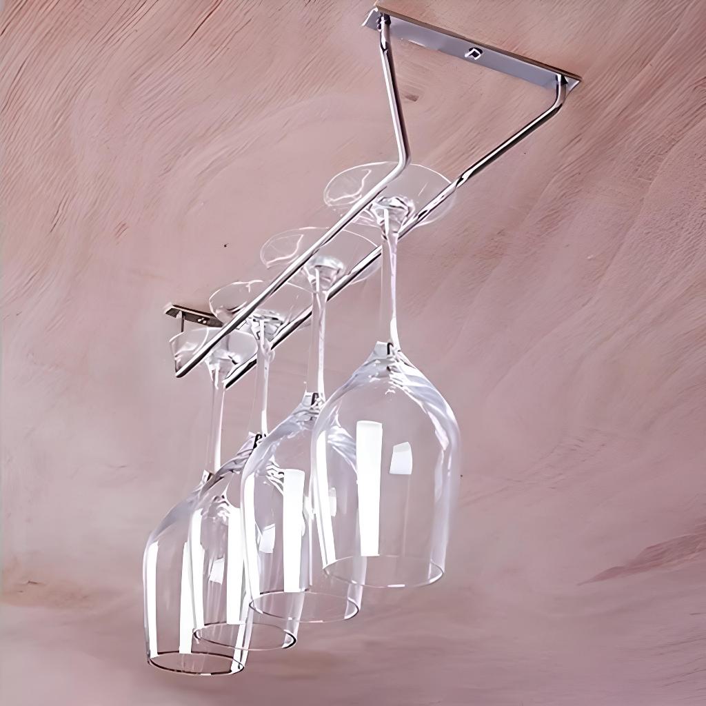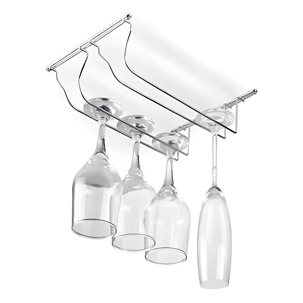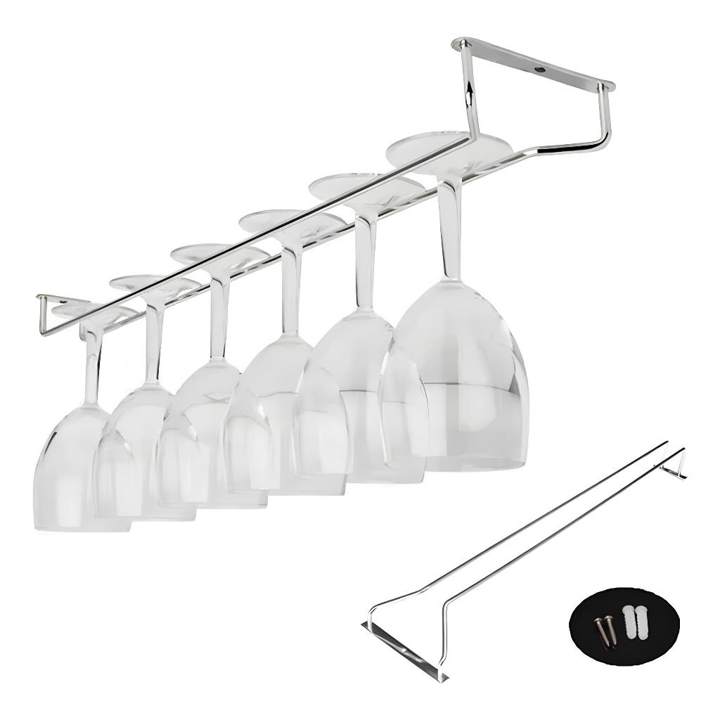 Kit 2 Suportes Aço Inox p/ Taças De Vinho – Ideal p/ Prateleiras, Armários e Decoração de Bares e Cozinhas