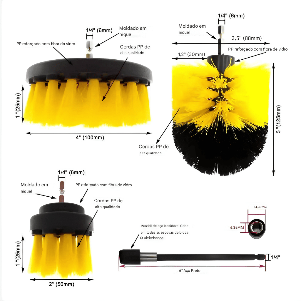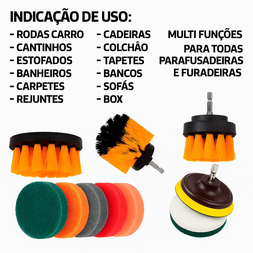 14 Escovas Limpeza Piso Sofá Tapete Estofado Parafusadeira