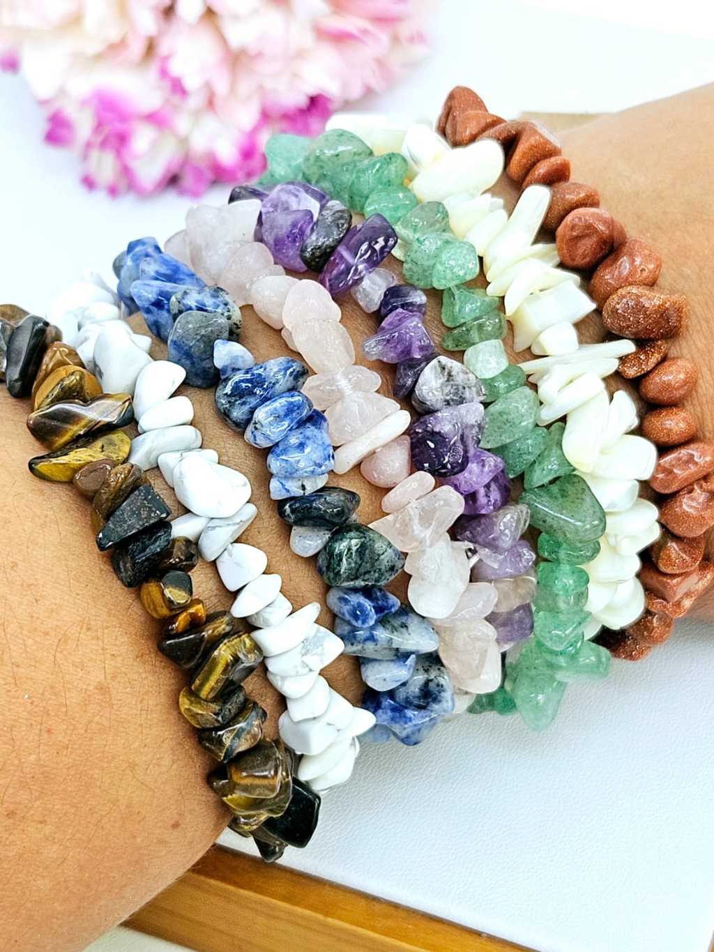 Pulseira em Cascalho de Pedras Naturais Unissex Energia