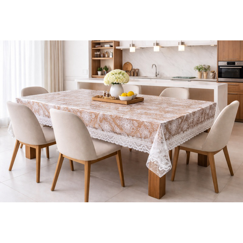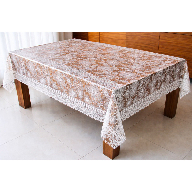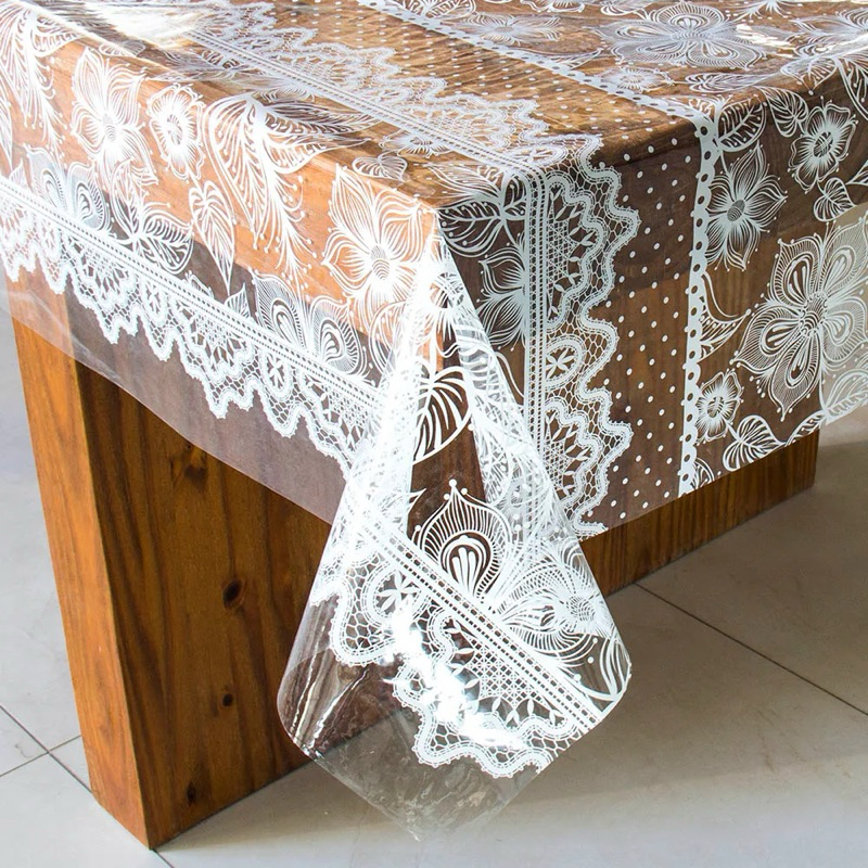 TOALHA DE MESA TRANSPARENTE DECORADA EM RENDAS FACIL DE LIMPAR EM VÁRIOS TAMANHOS