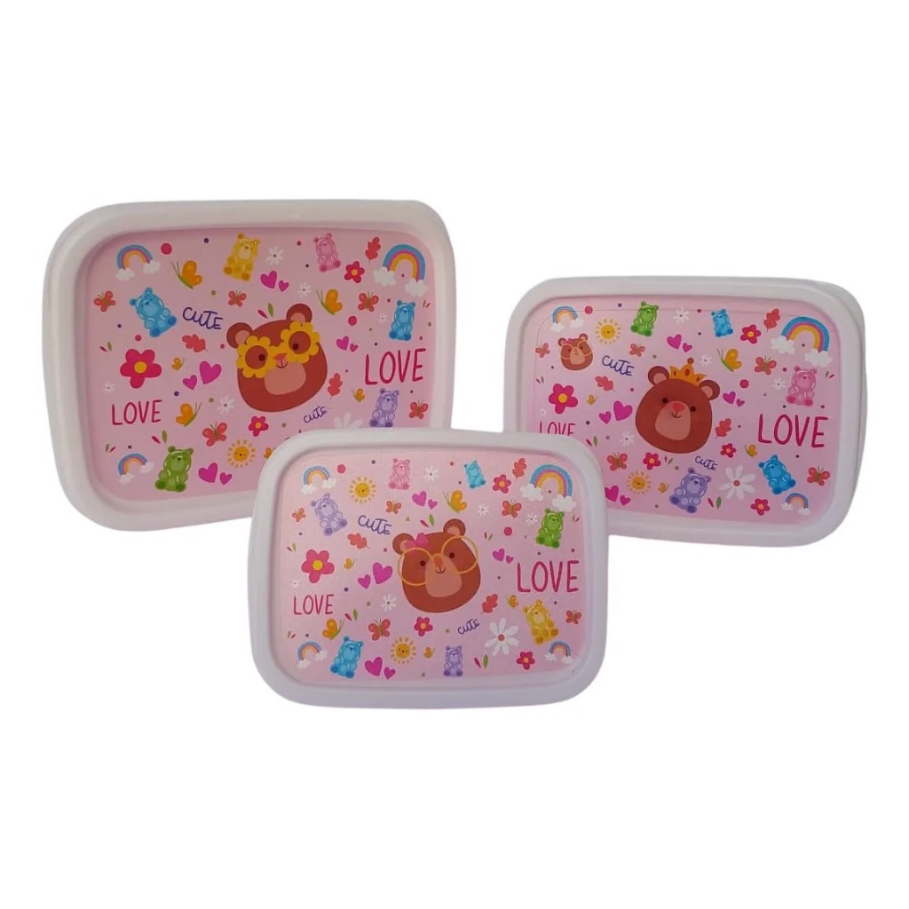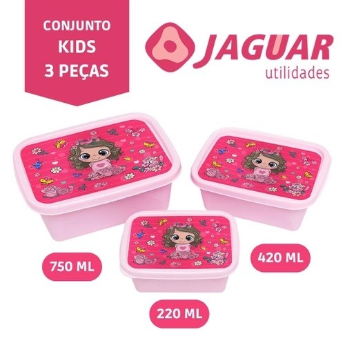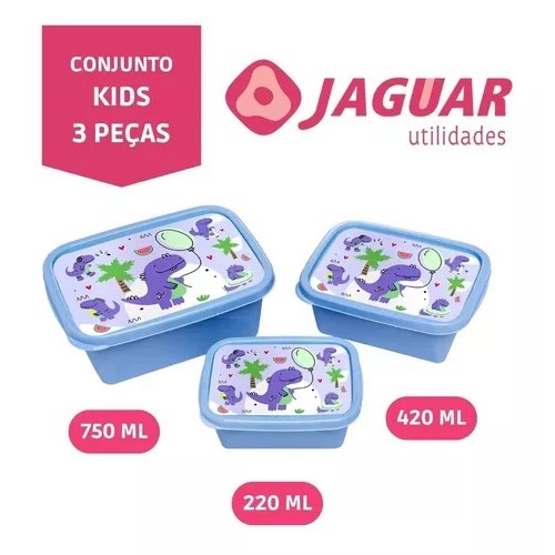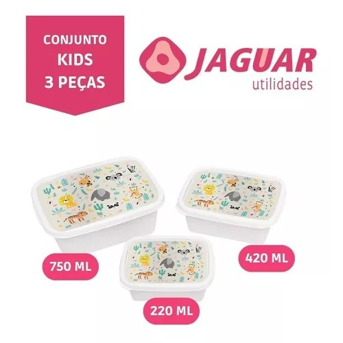 Kit 3 Potes 220ml 420ml 750ml com Desenho Criança Marmita BPA Free Jaguar