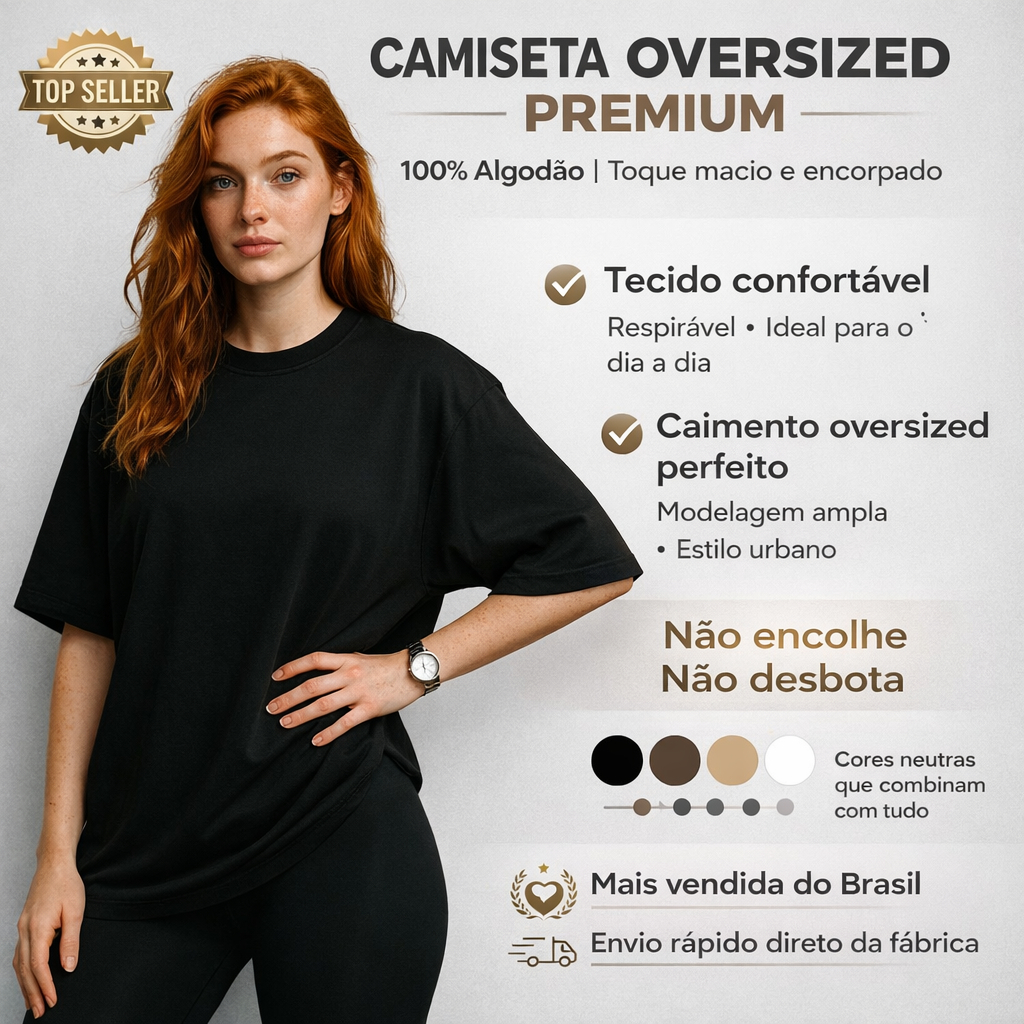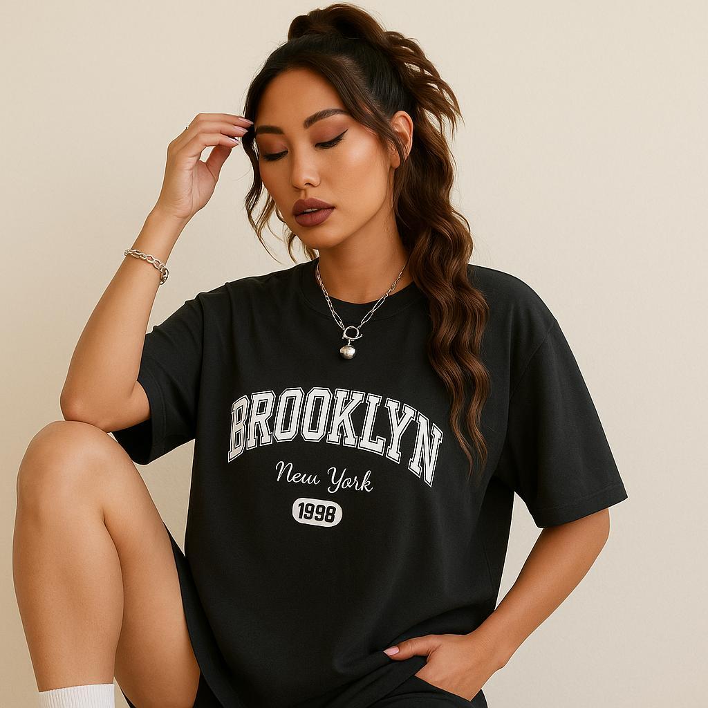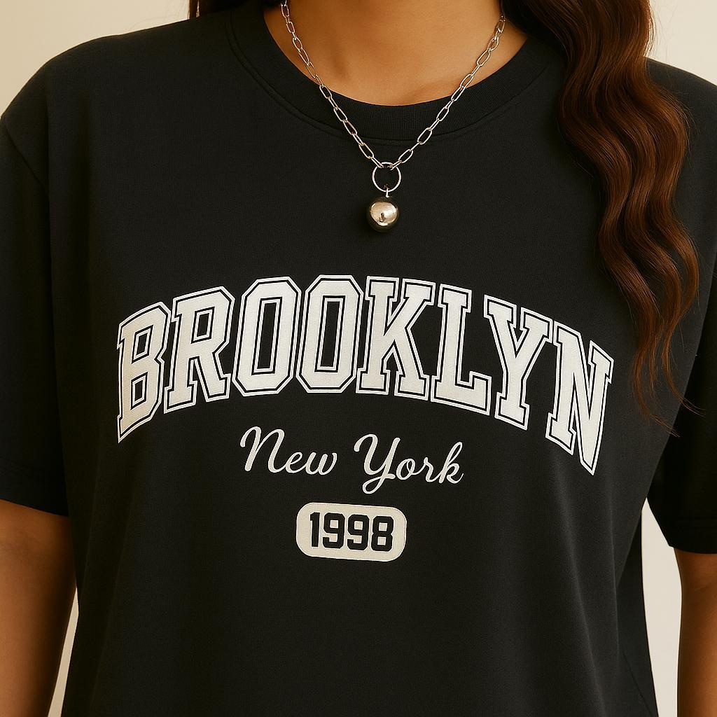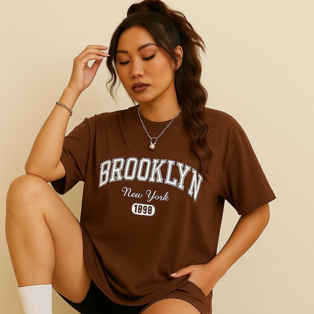 Camiseta Oversized Streetwear Feminina Brooklyn 100% Algodao CI