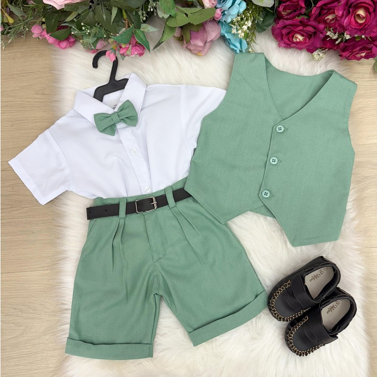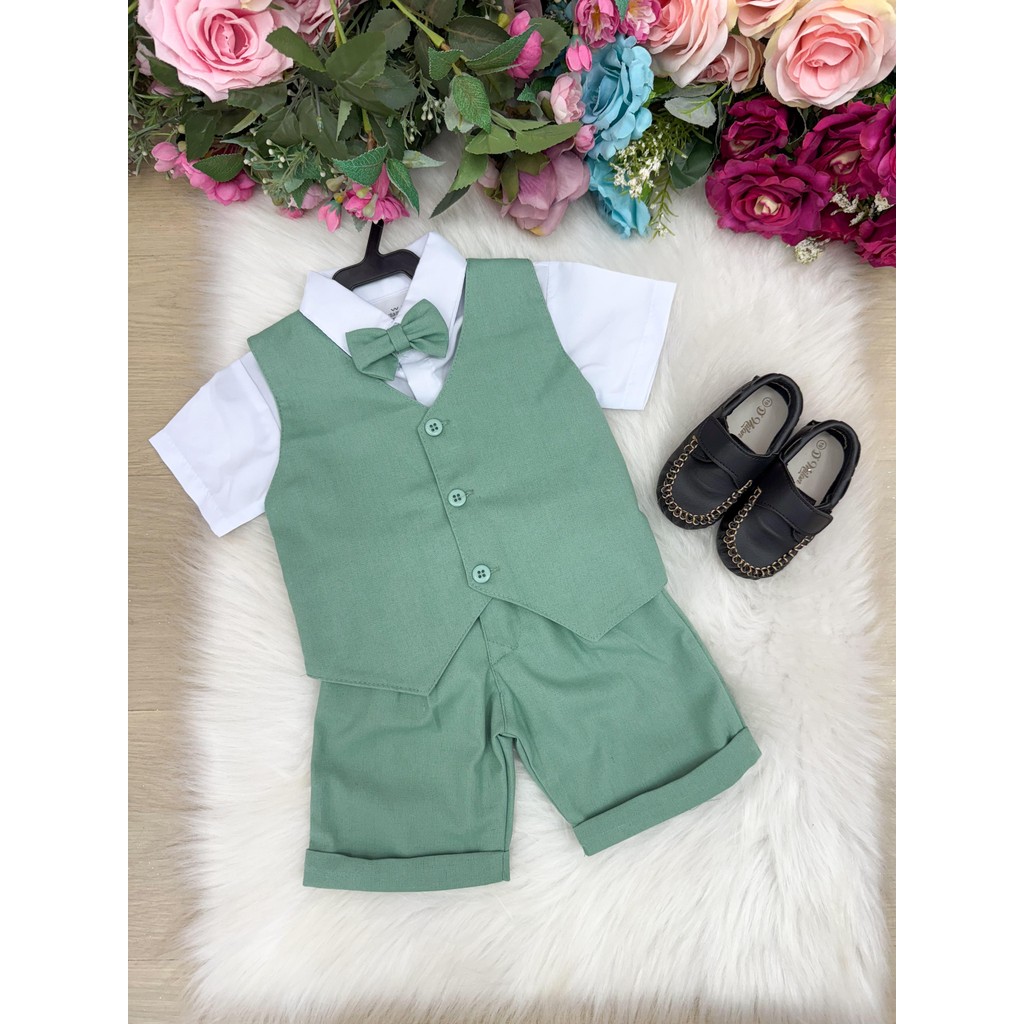 Conjunto Social Infantil Masculino Colete Verde Roupa Festa Casamento Batizado Formatura
