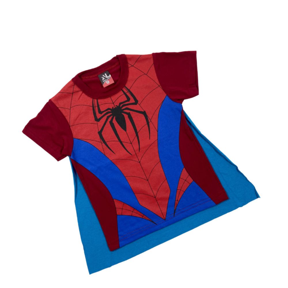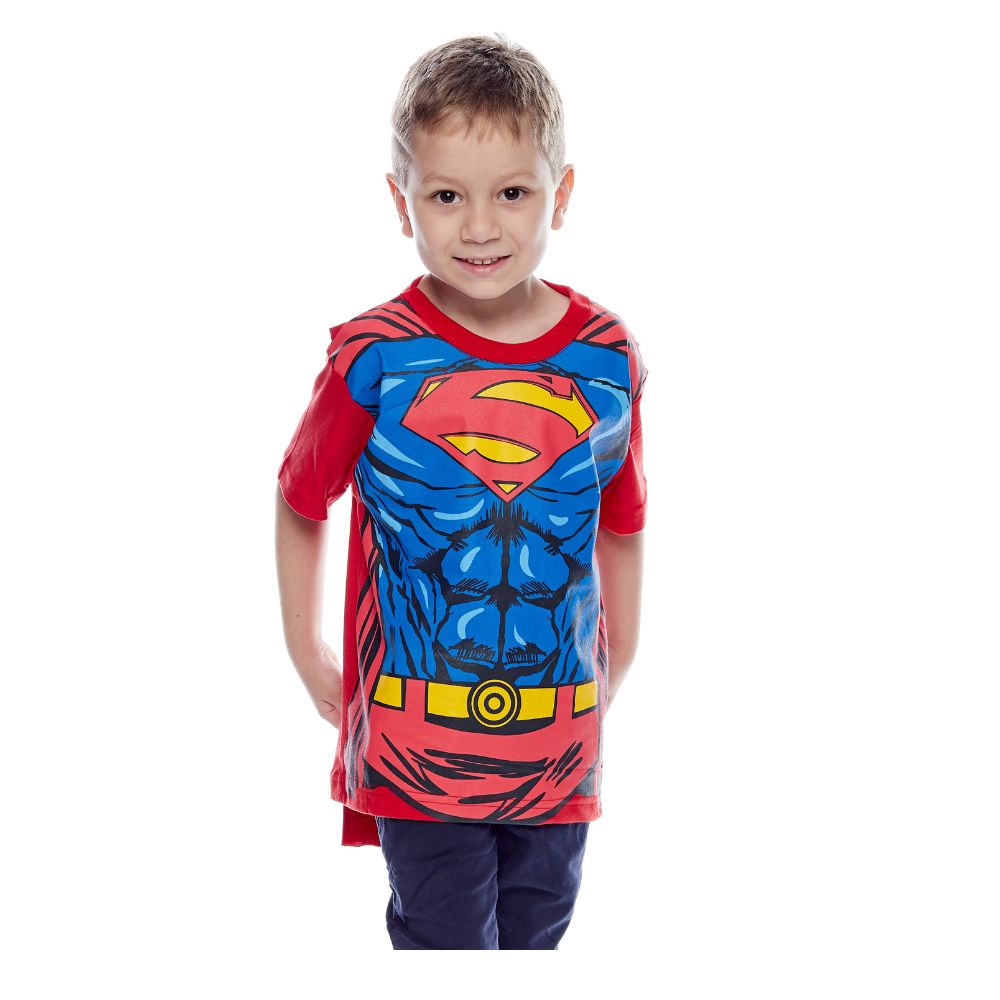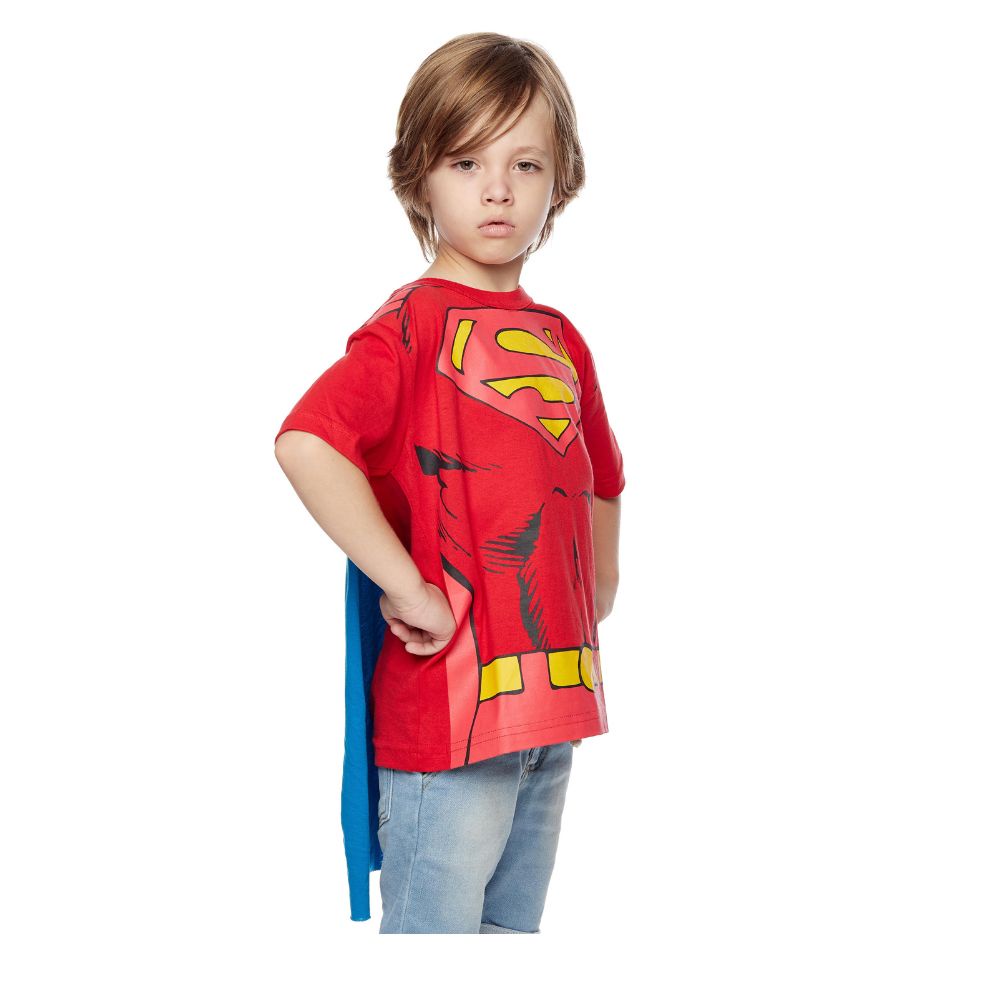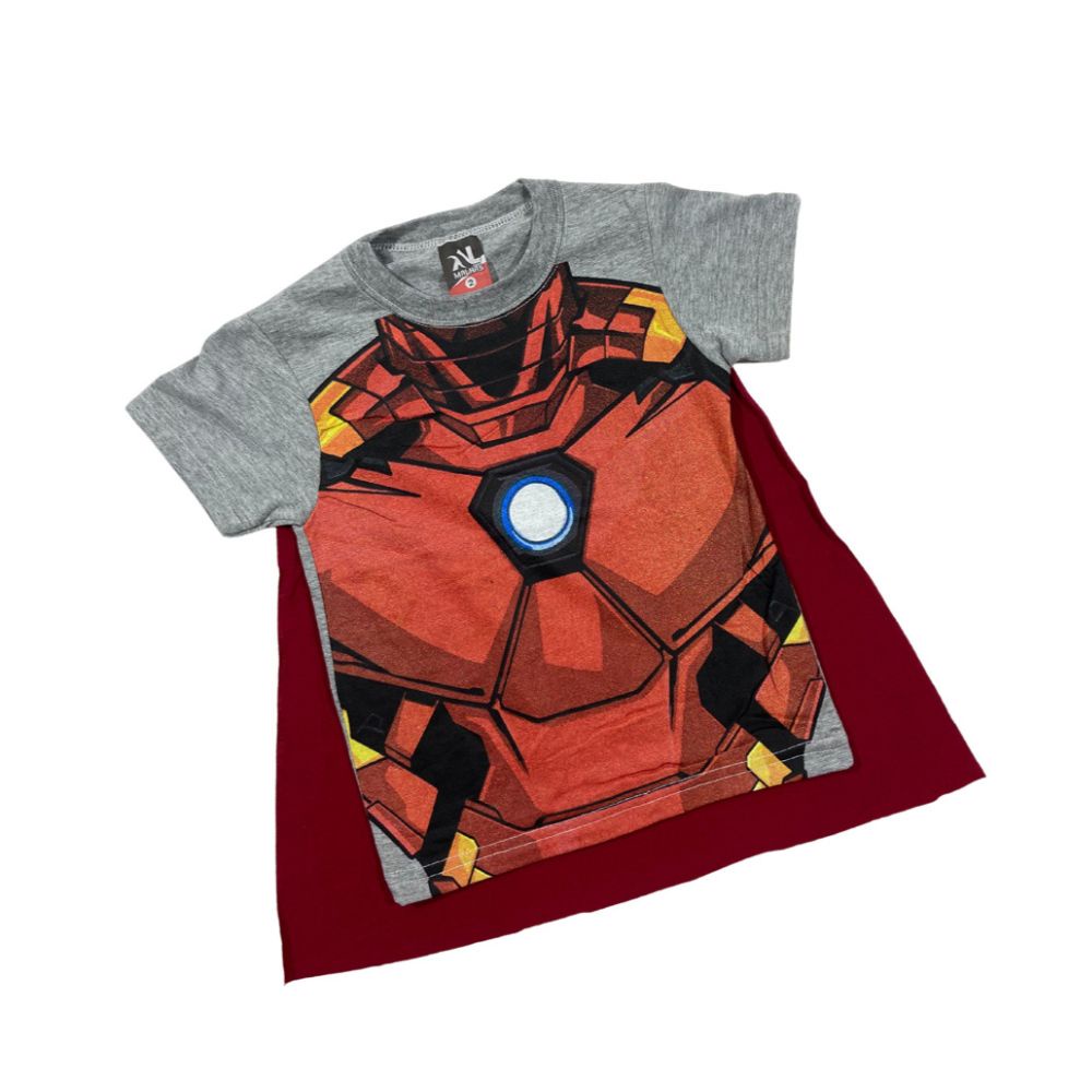 Camiseta Infantil Com Capa Costurada Manga Curta Menino Com Personagens Super Heróis