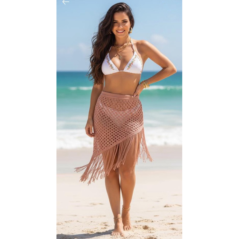 SAIA TRICOT PRAIA VERÃO CASUAL COM FRANJA ❤️🩹