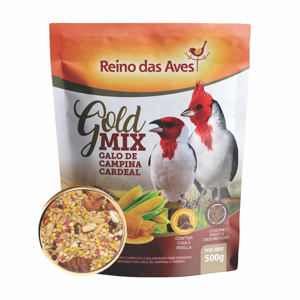 Racao Para Galo de Campina e Cardeal Gold Mix 500g -Reino Das Aves