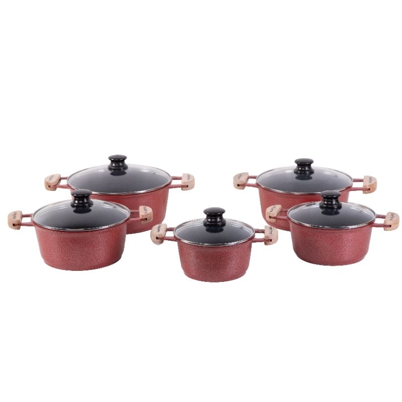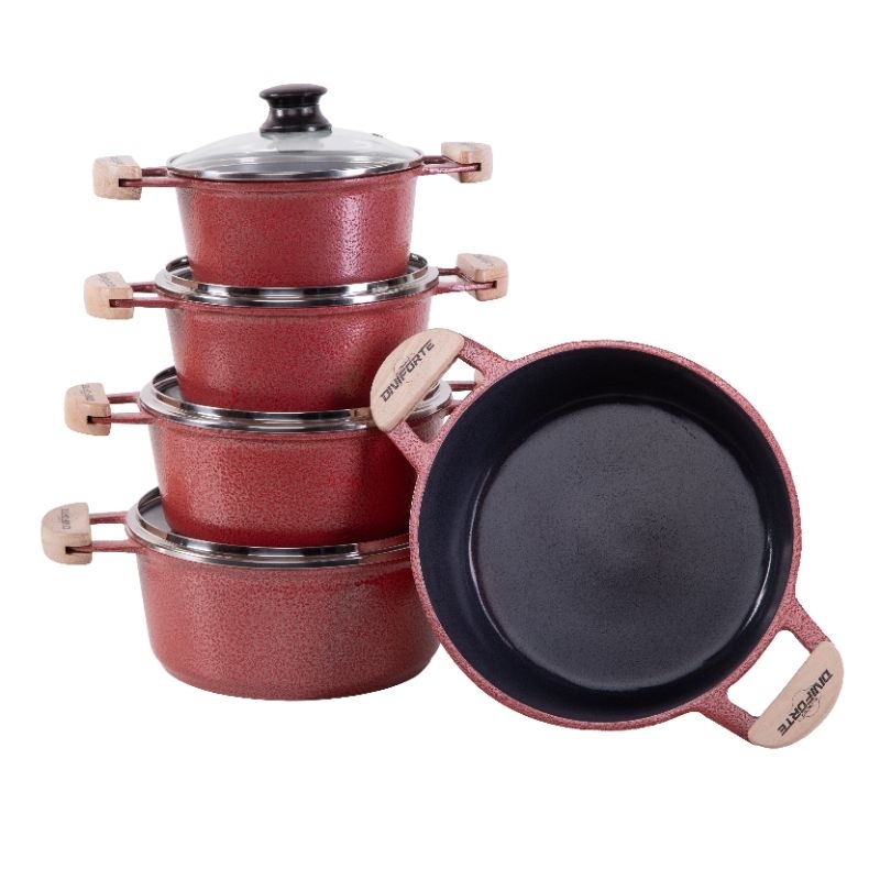 Jogo de Caçarolas em Alumínio Fundido com Revestimento em Cerâmica Vermelho