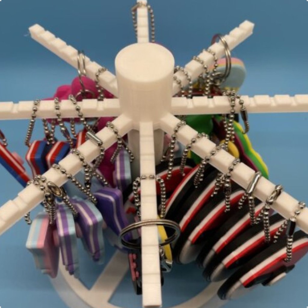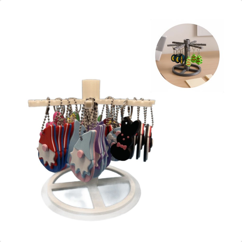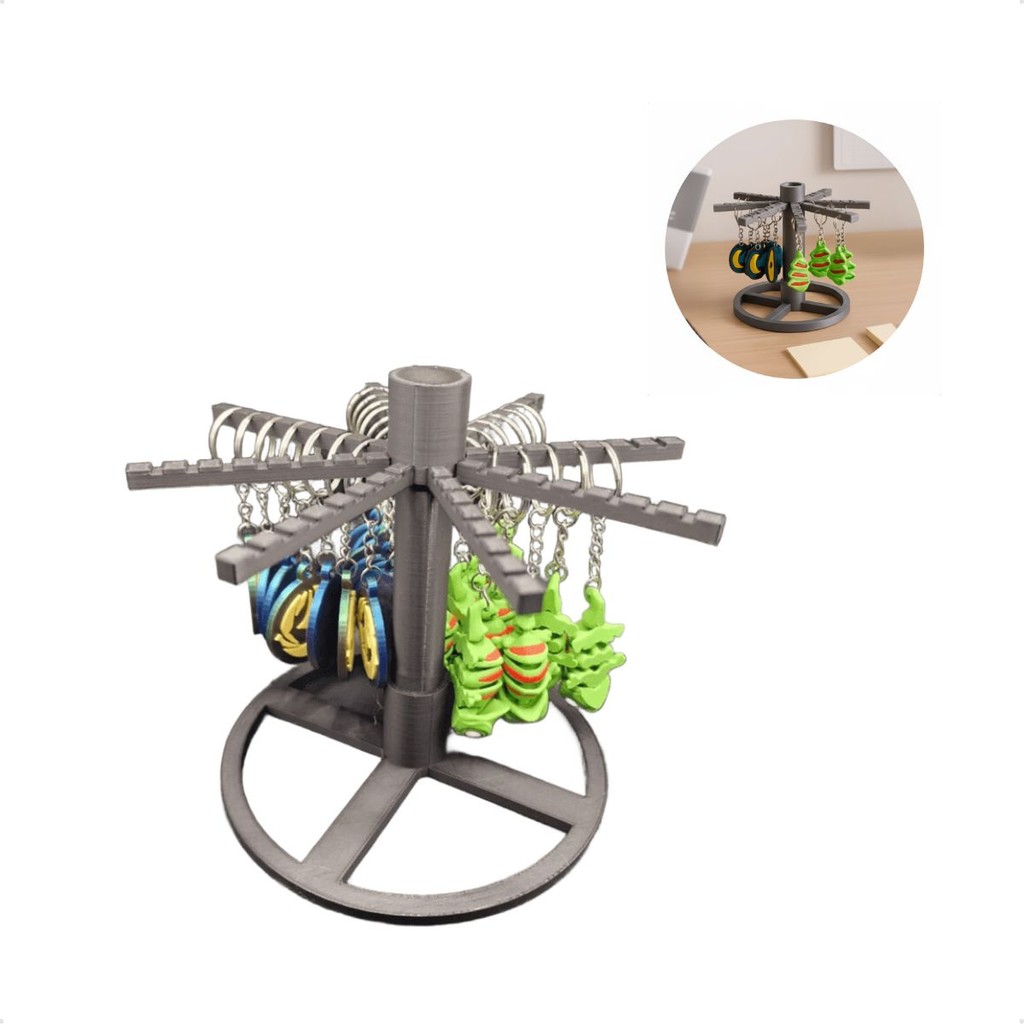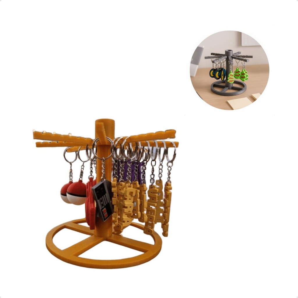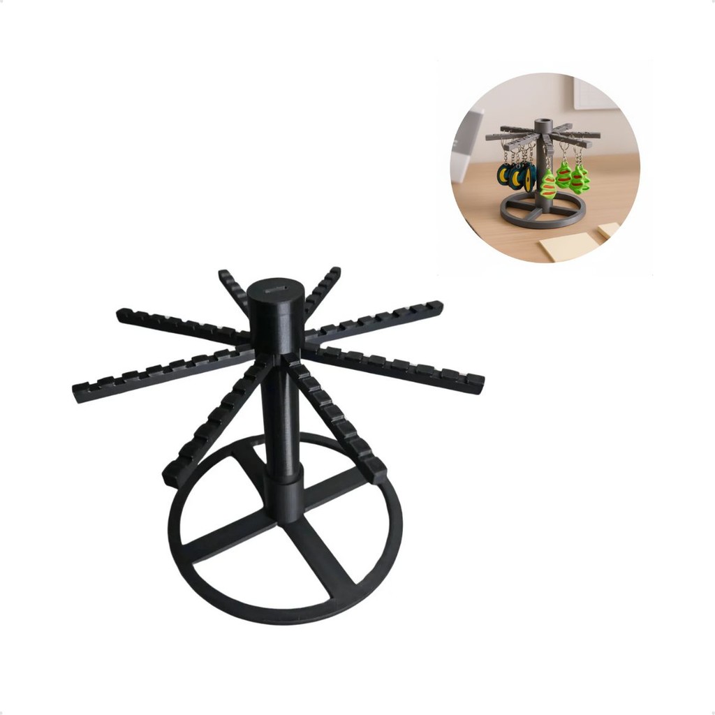 Suporte Porta Chaveiros Giratório De Mesa Display Com Base Estável e 8 Braços Para Organizar e Expor Coleções