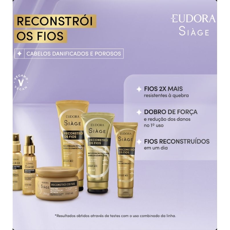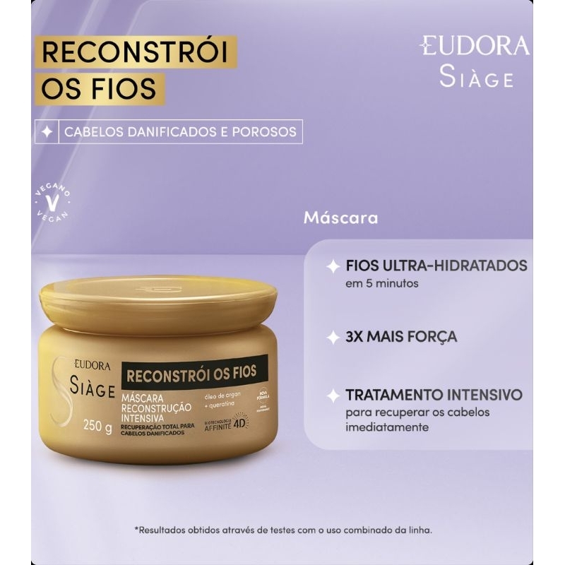 Eudora Siàge Kit Reconstrói os Fios Tratamento Capilar Completo Shampoo Condicionador Máscara