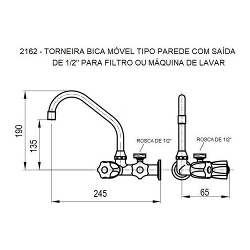 2162 C80 Torneira Gourmet Parede para Filtro 1/4" ou Purificador 1/2"