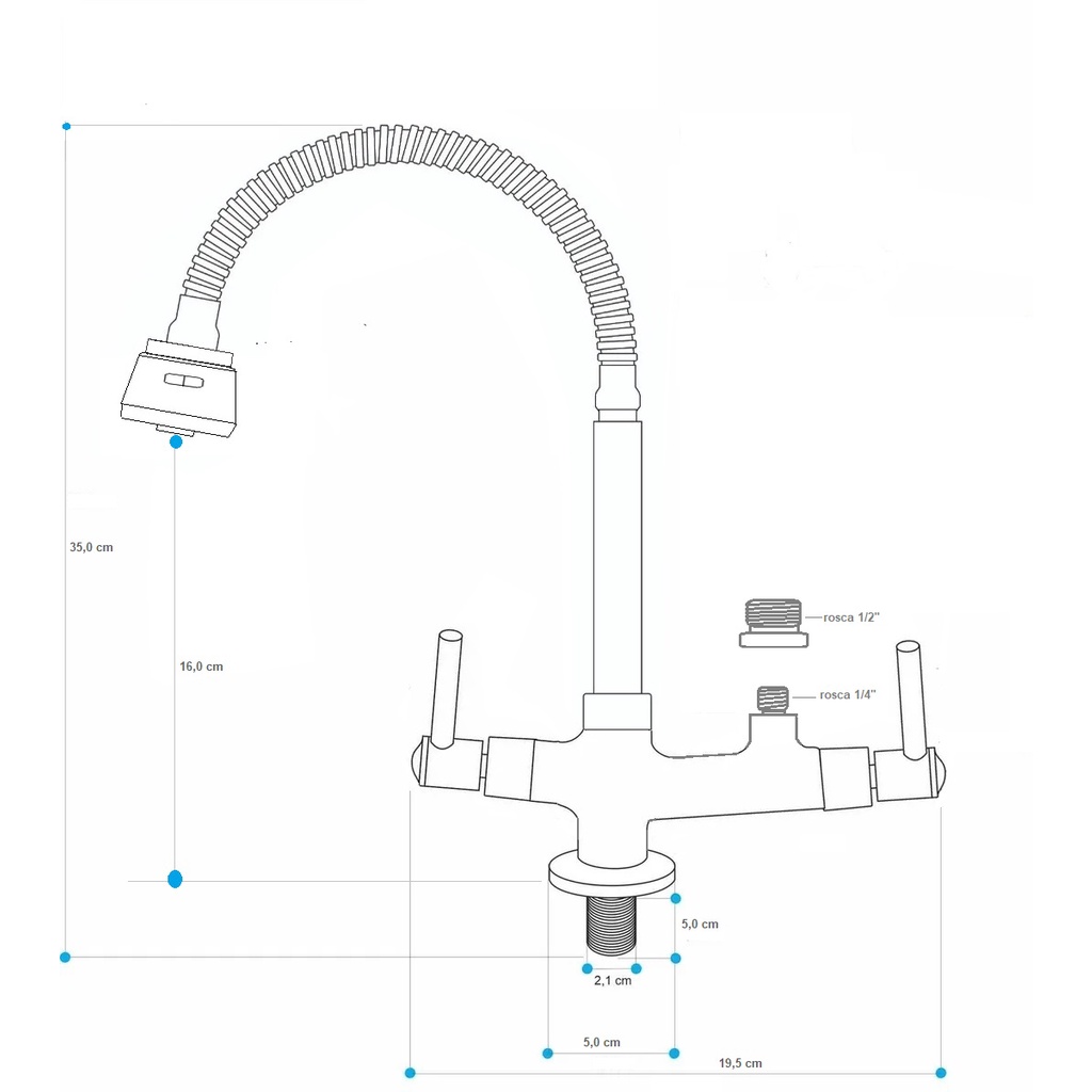 Torneira Bancada Alta Vazão Saída Filtro Purificador 1/4 ou 1/2 - 2142MVS
