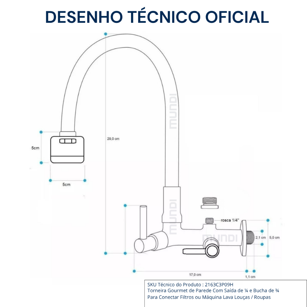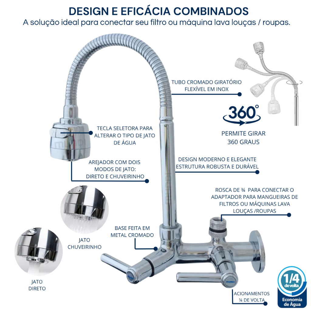 2163 C80 Torneira Gourmet Parede para Filtro 1/4" ou Máquina de Lavar 3/4" (LAVA LOUÇA)