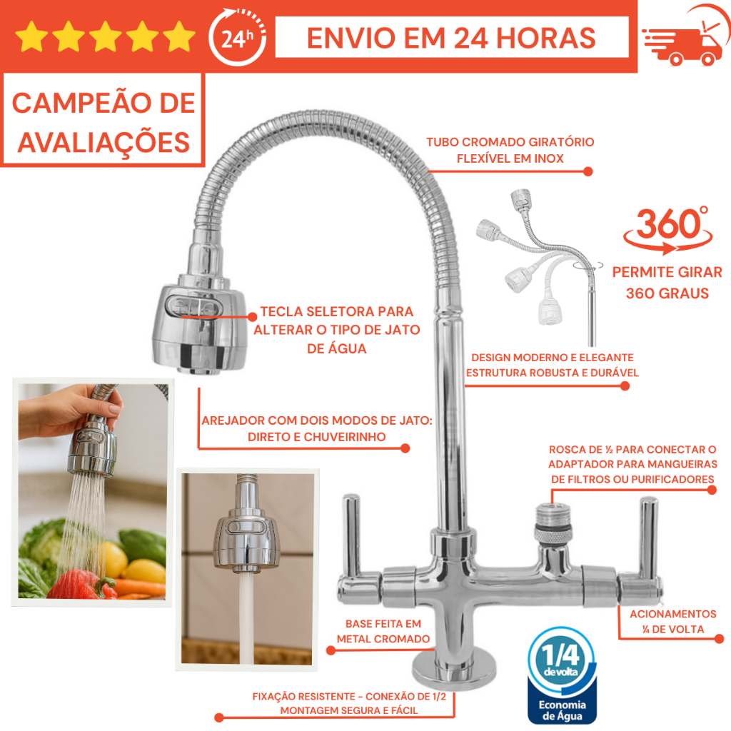 2142 C80 Torneira B.móvel Gourmet Bancada p/filtro 1/4" ou purificador 1/2"