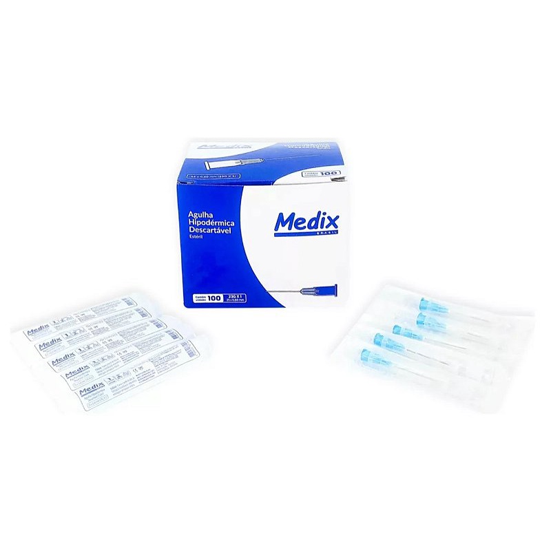 Caixa C/100 Agulhas Hipodérmica Descartável 25 x 0,60mm 23g (Azul) - Medix