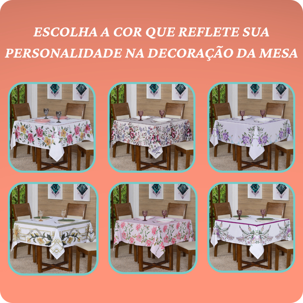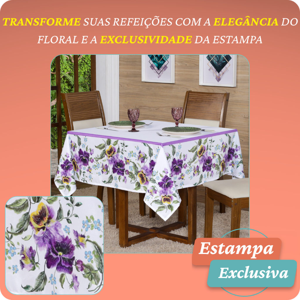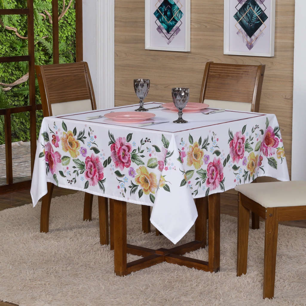 Toalha de mesa p/ 4 Lugares Quadrada 1,50x1,50 (Decoração, Cozinha, Flores, Mesa Posta)