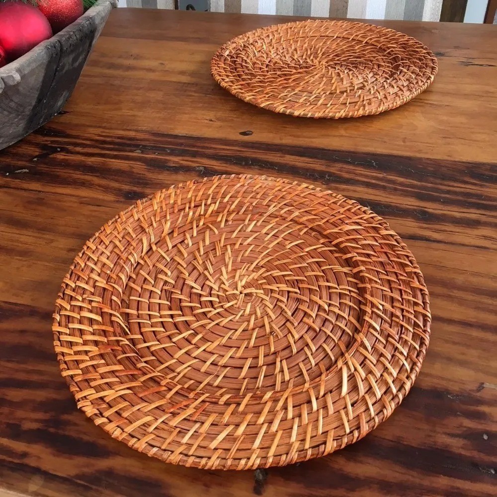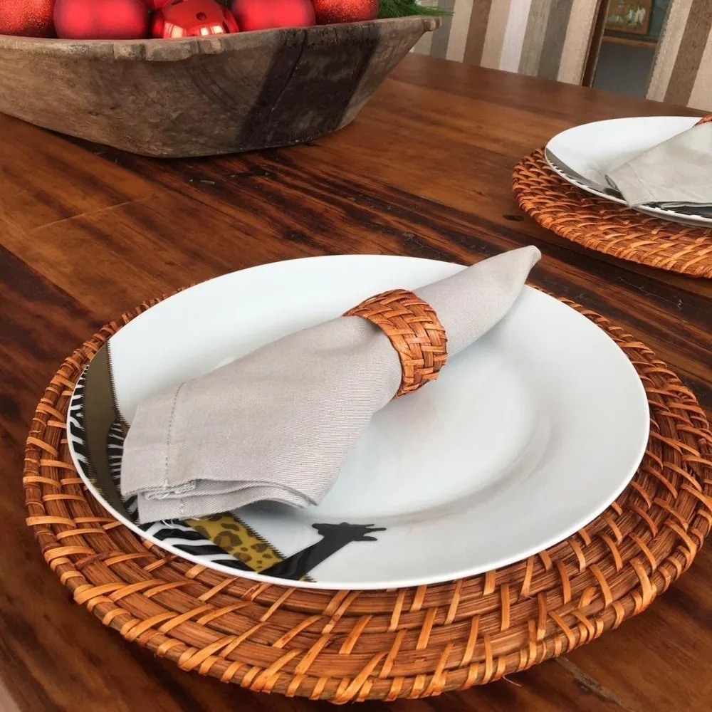 Kit 4 Sousplat Redondo Mundiart Rattan Bambu Cores Variadas