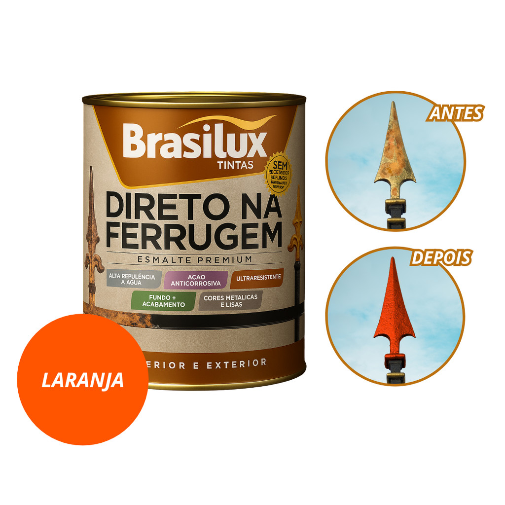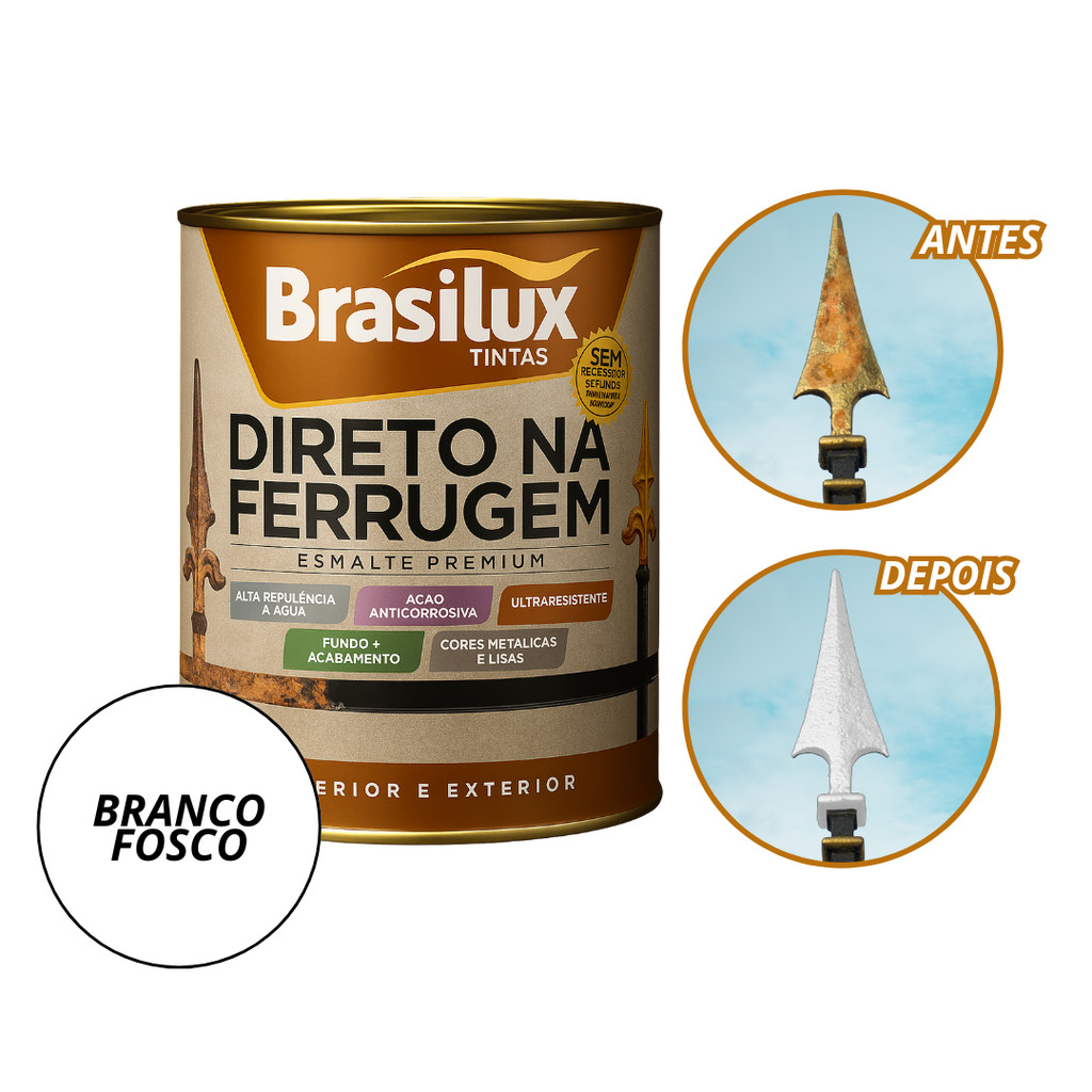 Tinta Esmalte Direto Na Ferrugem Resistente 900ml 3,6L Brasilux