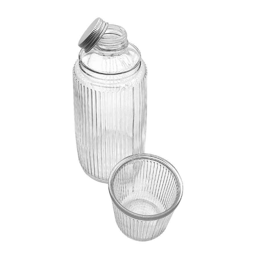 Moringa De Vidro Canelado Transparente Com Copo Água 1l