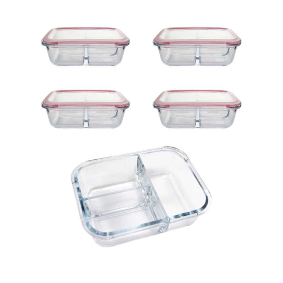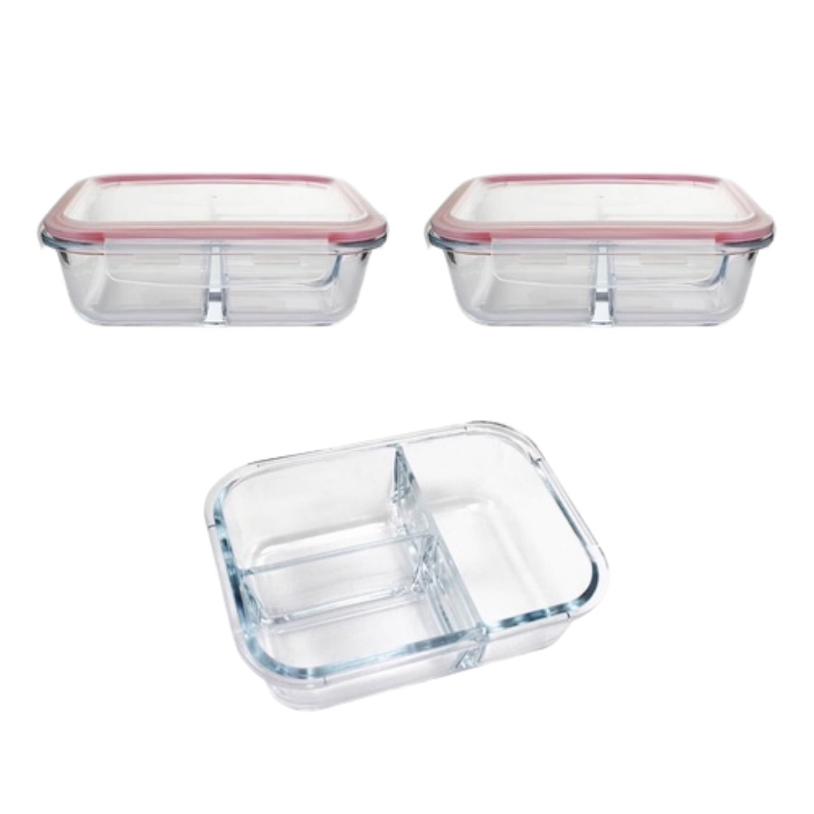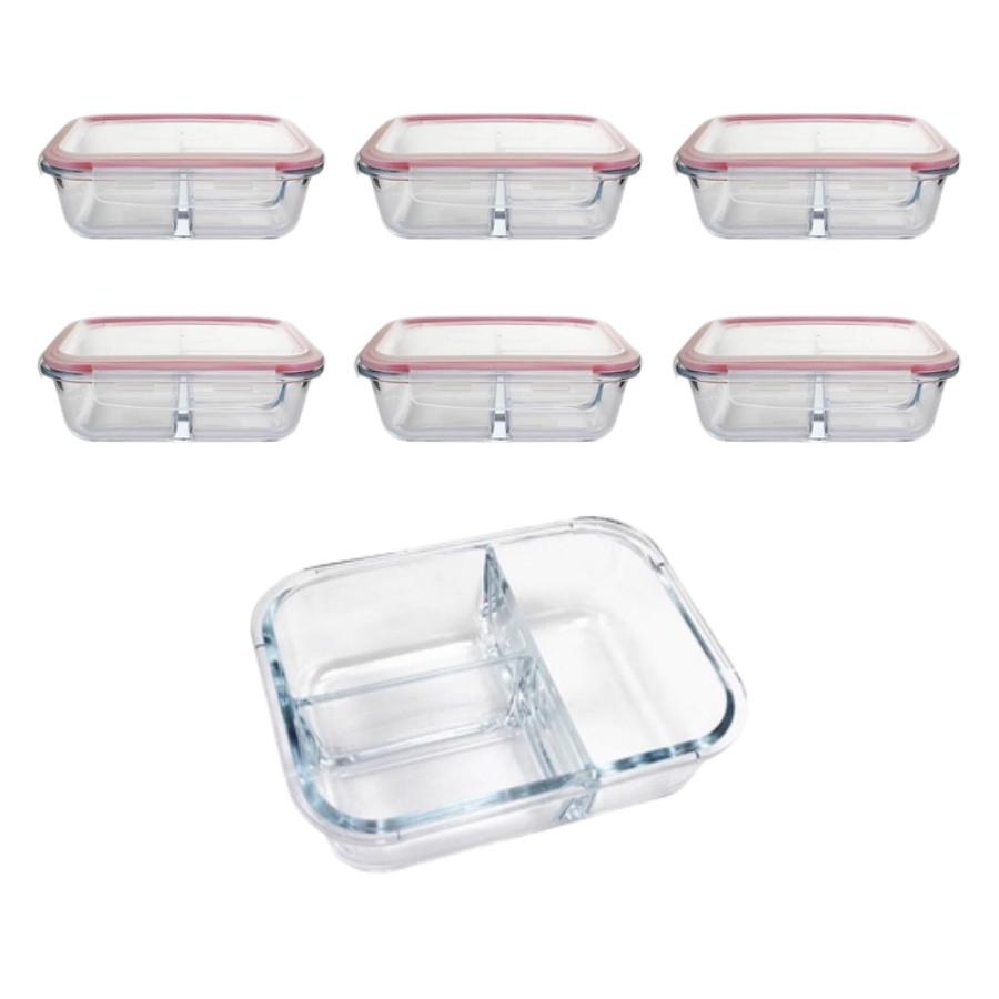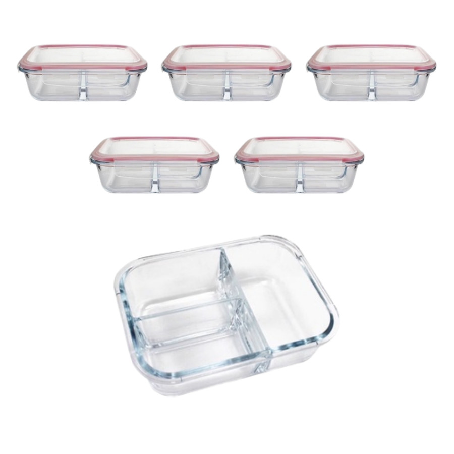 Kit 6 Pote Vidro Hermético 3 Divisórias Tampa Lock Marmita 890ml