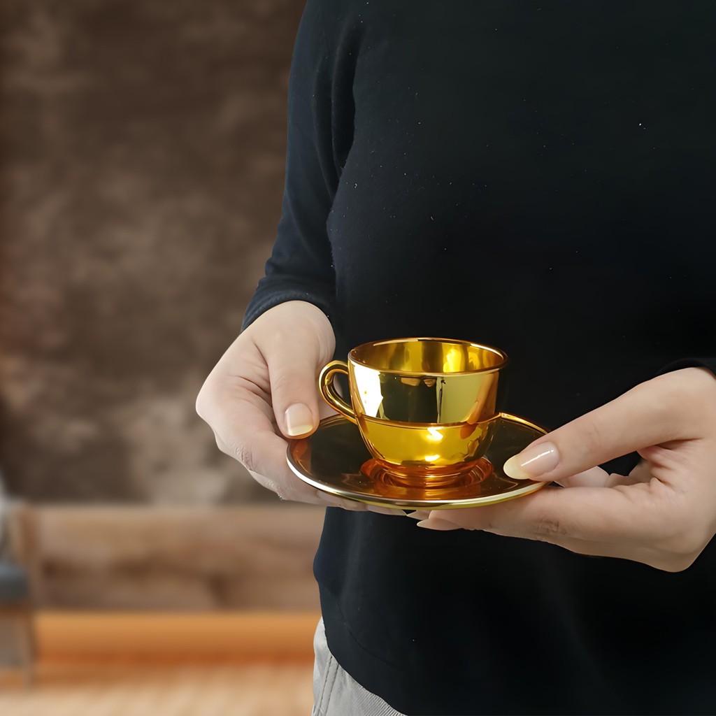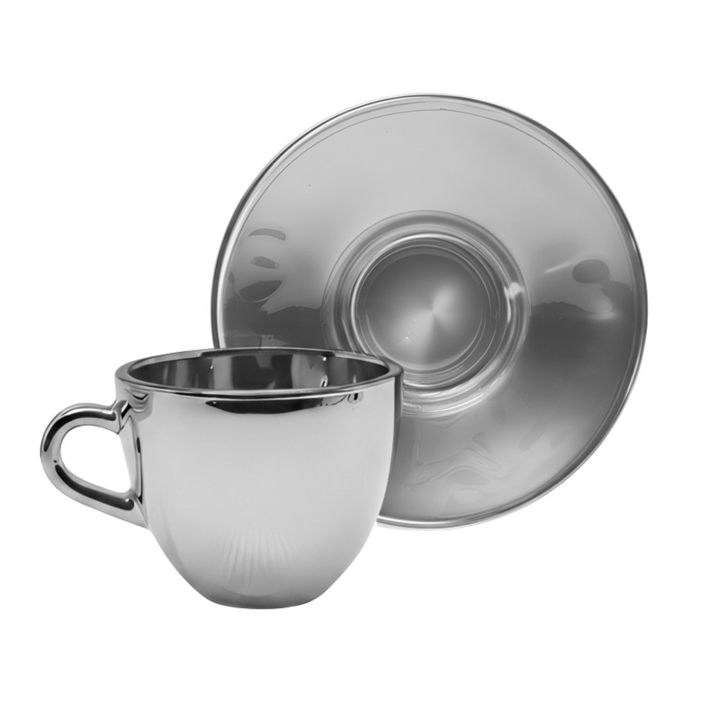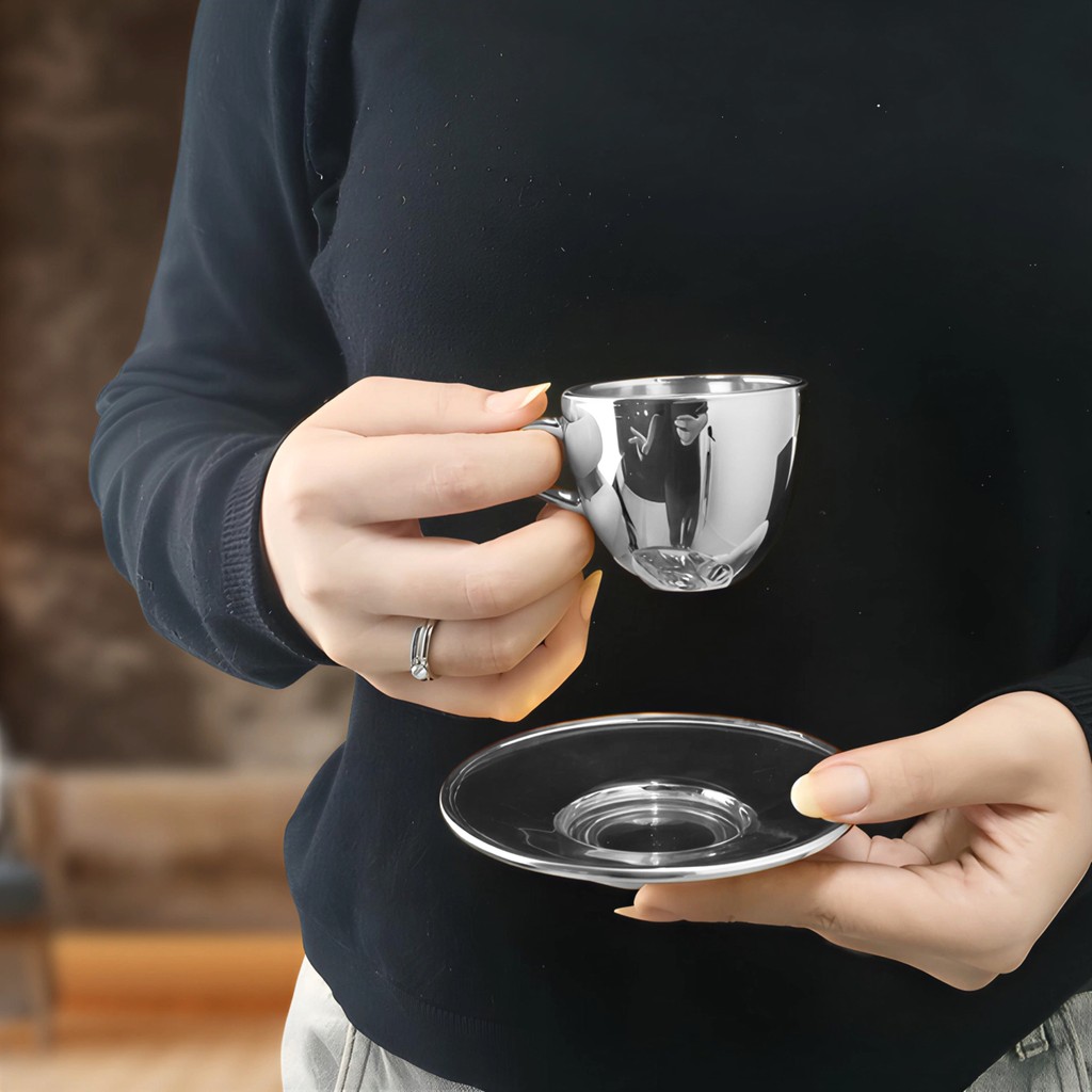 Jogo 6 Xicaras Para Café Chá De Vidro Com Pires E Suporte 85ml