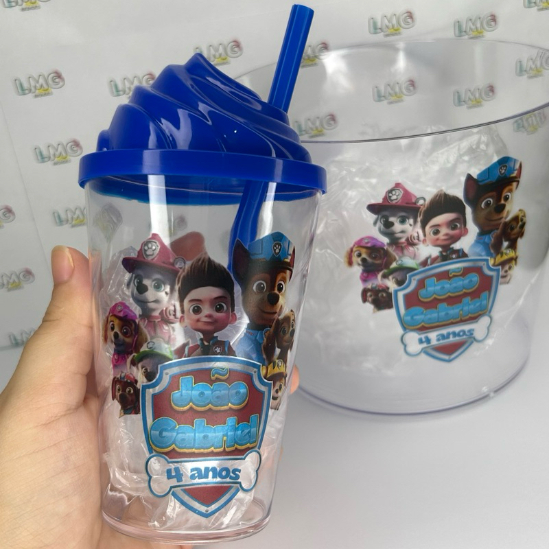 Kit Balde de Pipoca e Copo Twister Personalizados 300ml Com Tampa Chantilly TODOS OS TEMAS STICH PATRULHA HOMEM ARANHA