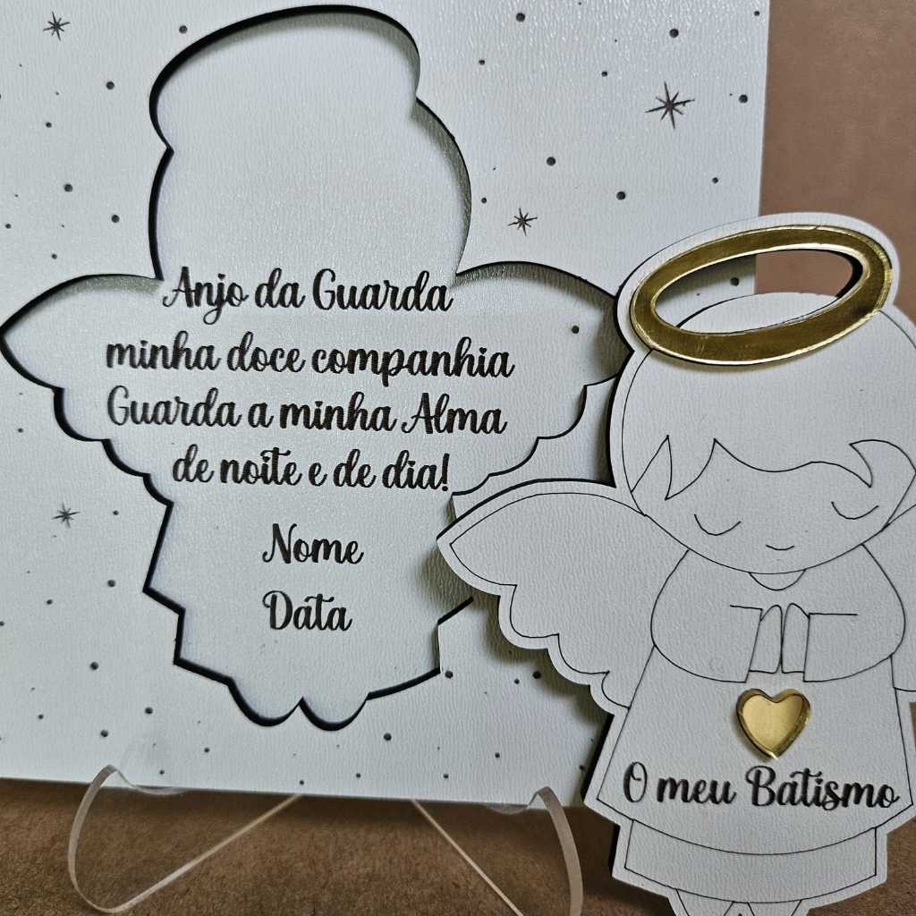 Lembrancinha para Batizado 10 Peças MDF BRANCO Suporte em Acrílico transparente e Detalhes em ACRILICO DOURADO