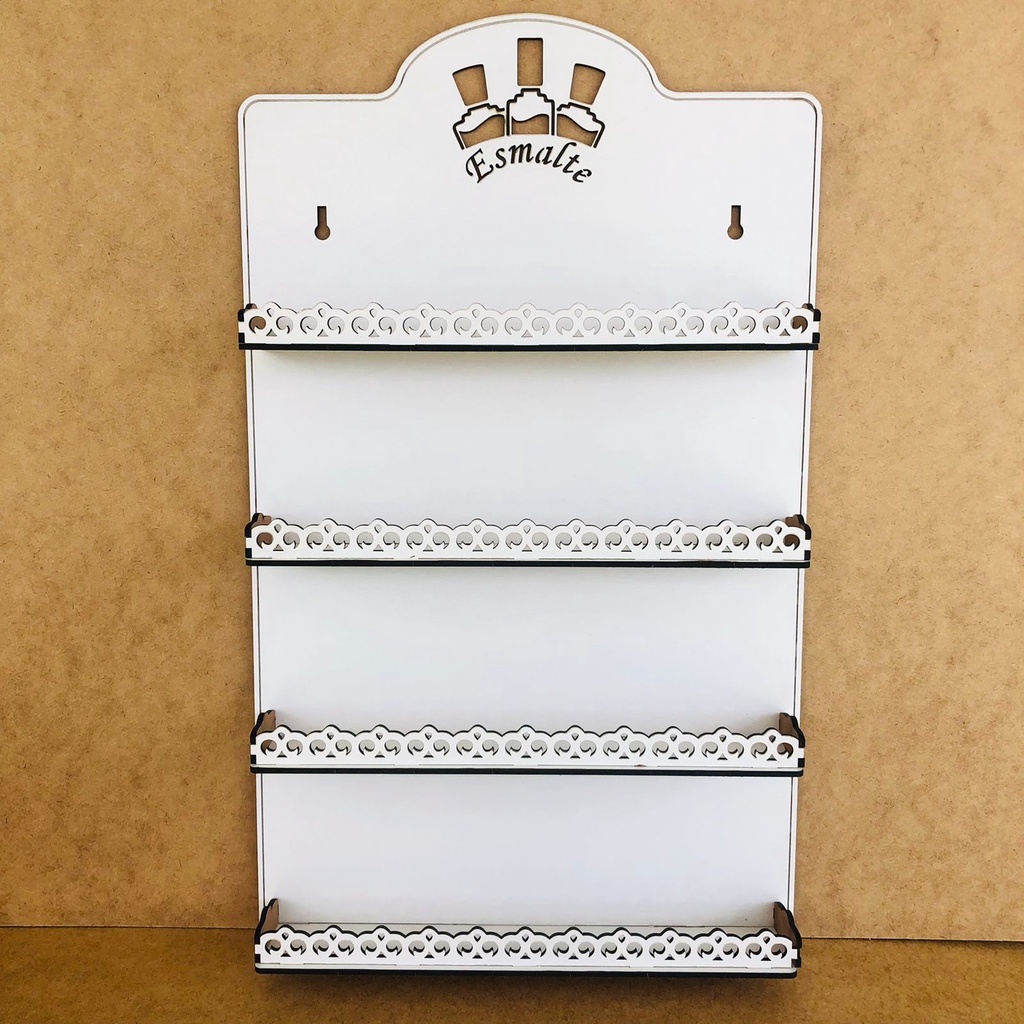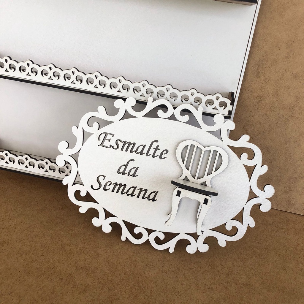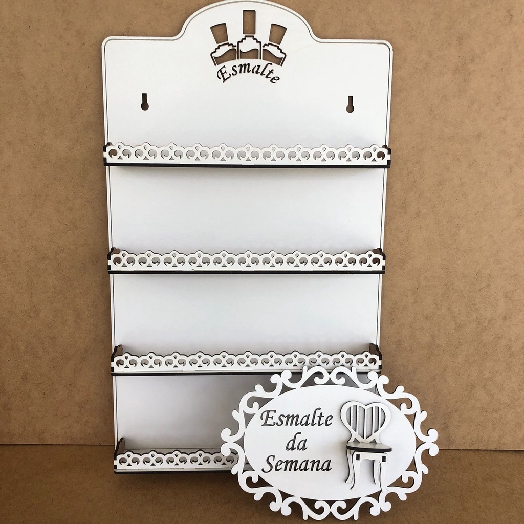 Porta Esmalte Modelo Novo Vazado em mdf branco de 3mm Expositor + SUPER ESMALTE DA SEMANA