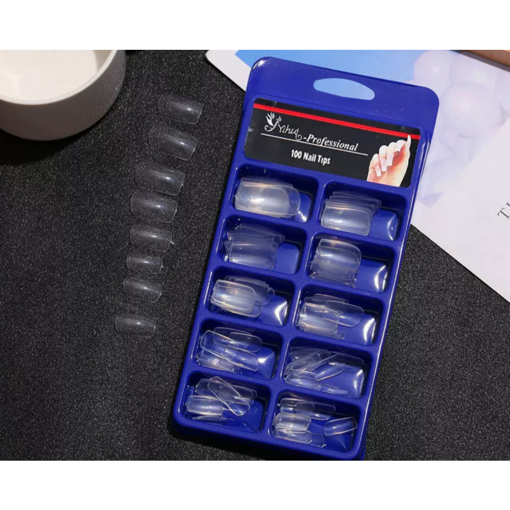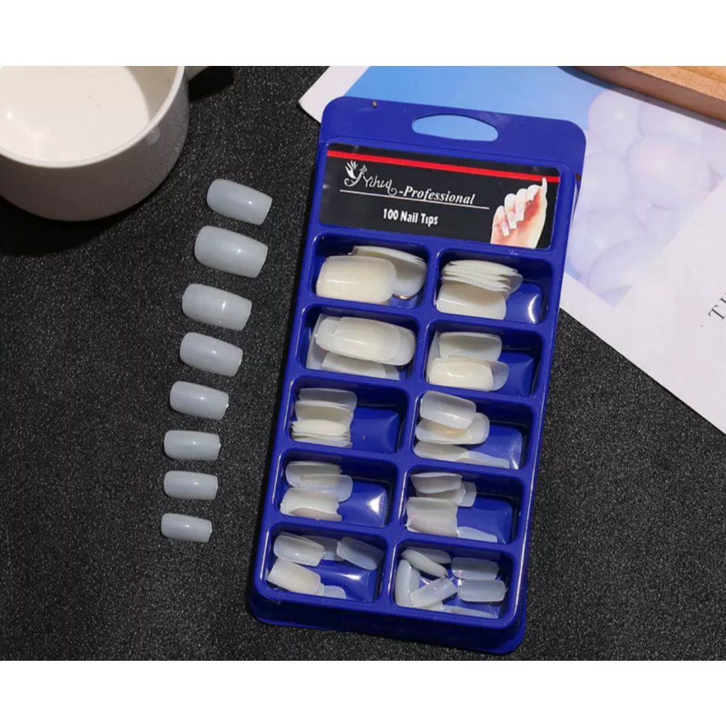 Cx 100 Unha Postiça Reta Natural - Caixa Acrilic