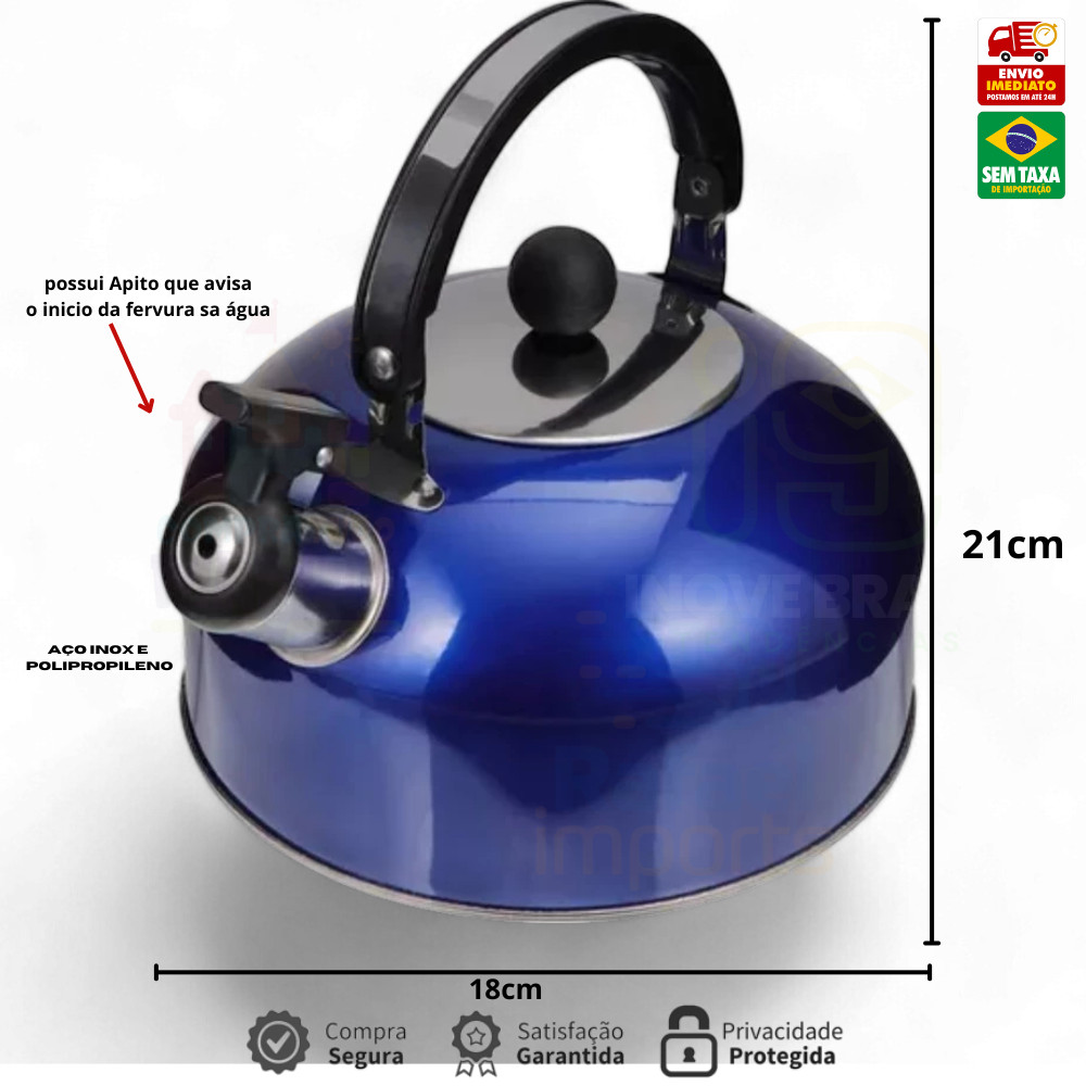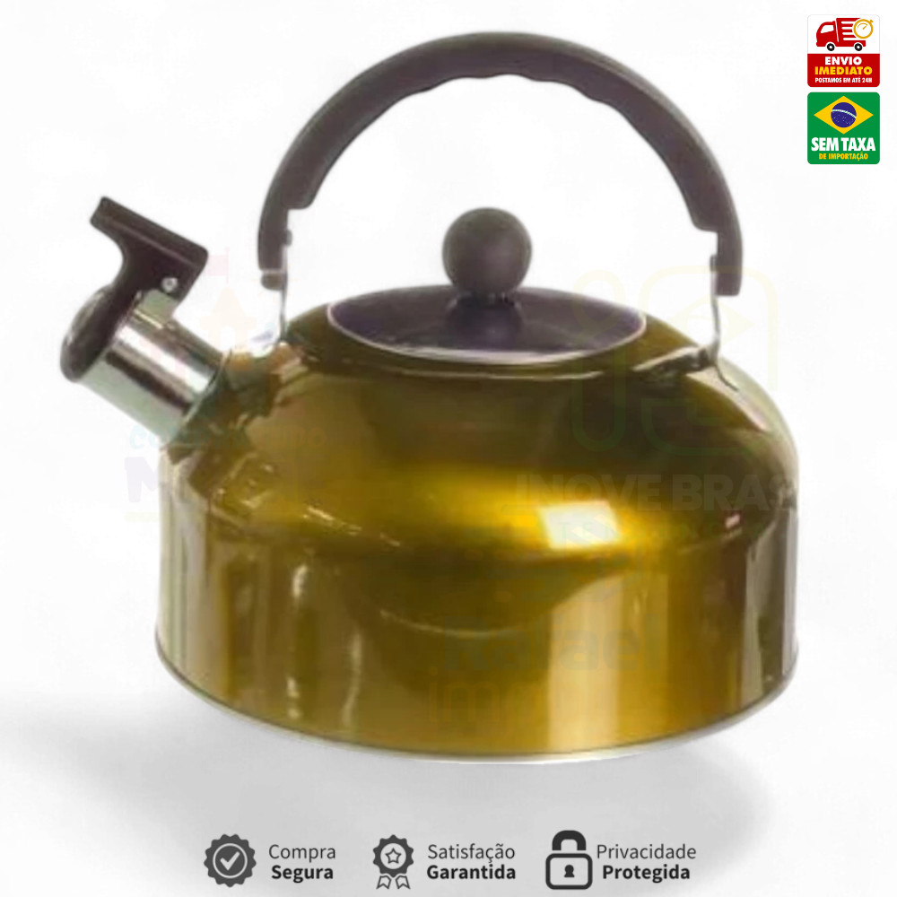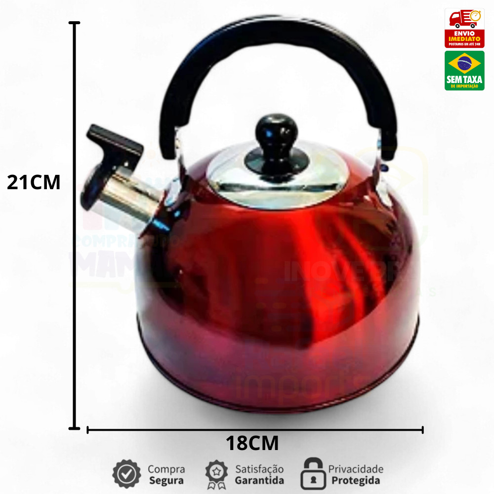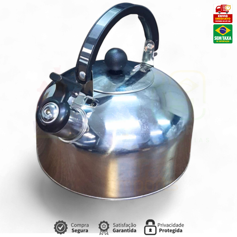 Chaleira Inox 2L com Tampa Alça Térmica e Apito para Café Cha Bebidas