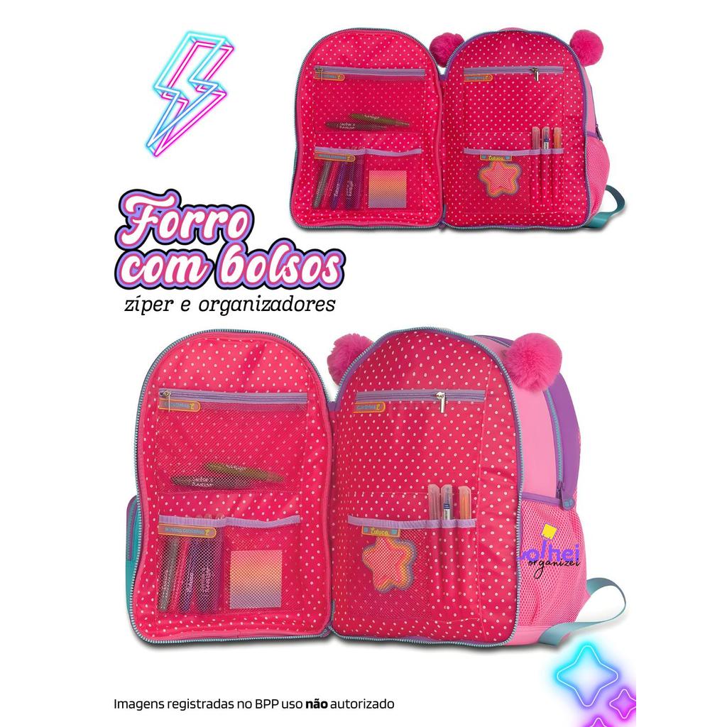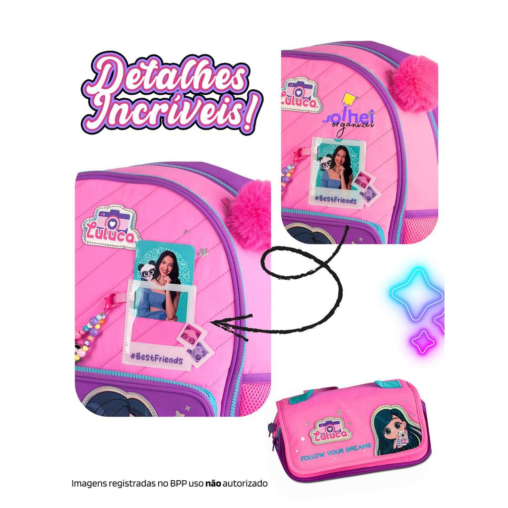 Kit Mochila Rodinha Luluca Youtuber Oficial Estojo Organizador Triplo Escolar Chaveiro Lançamento
