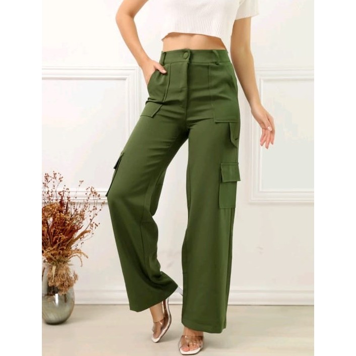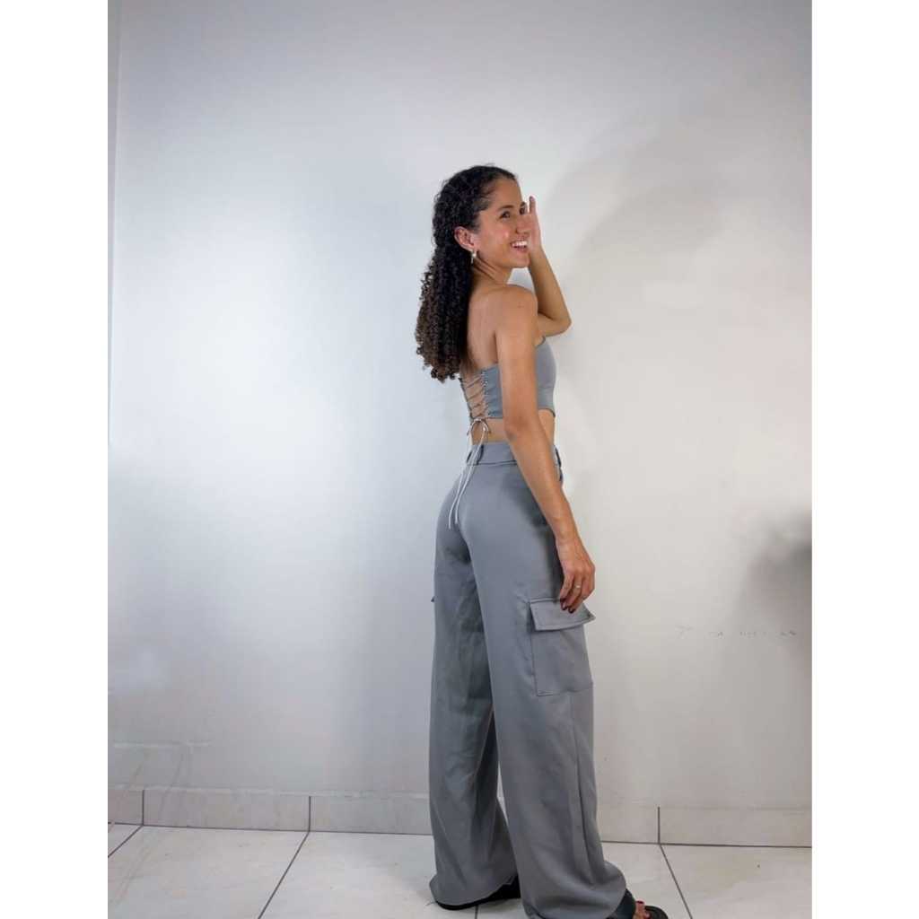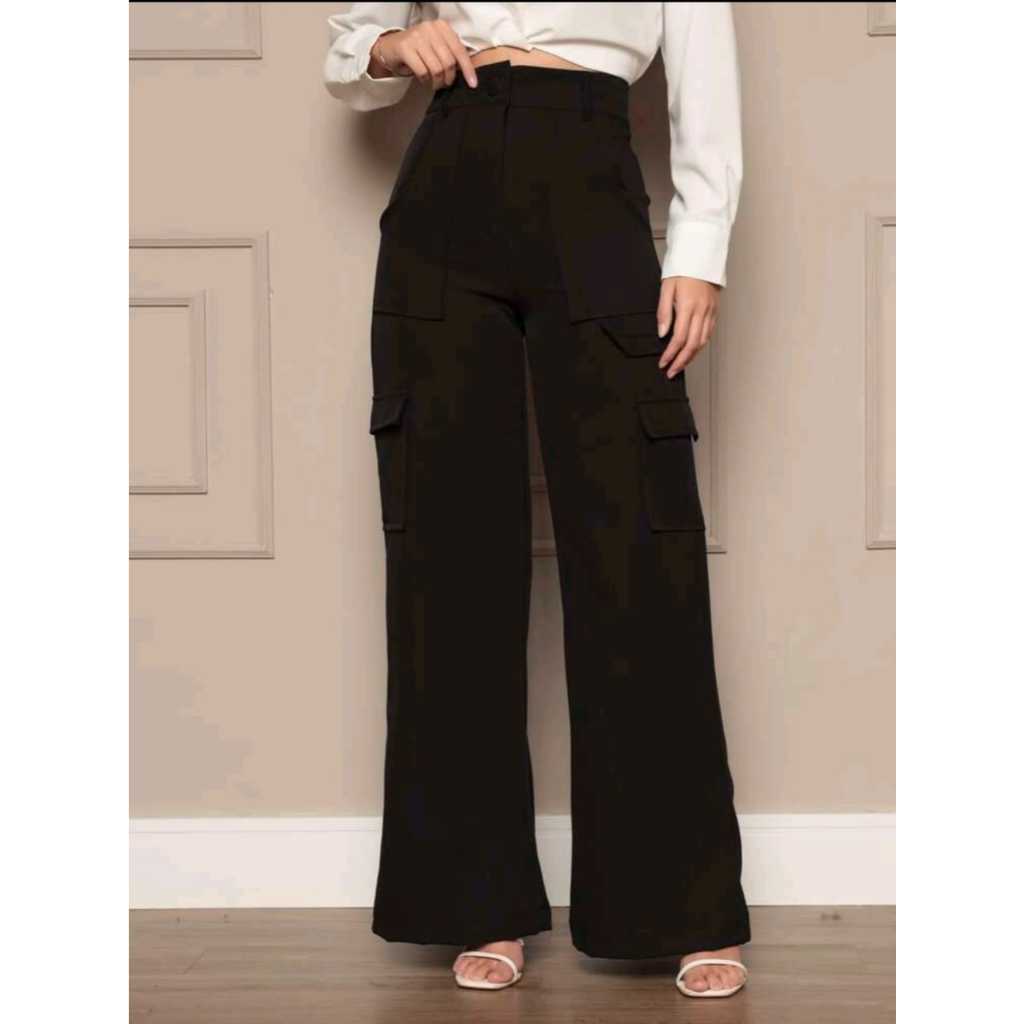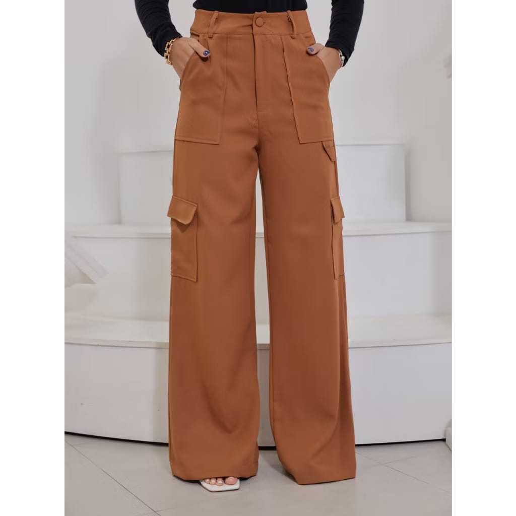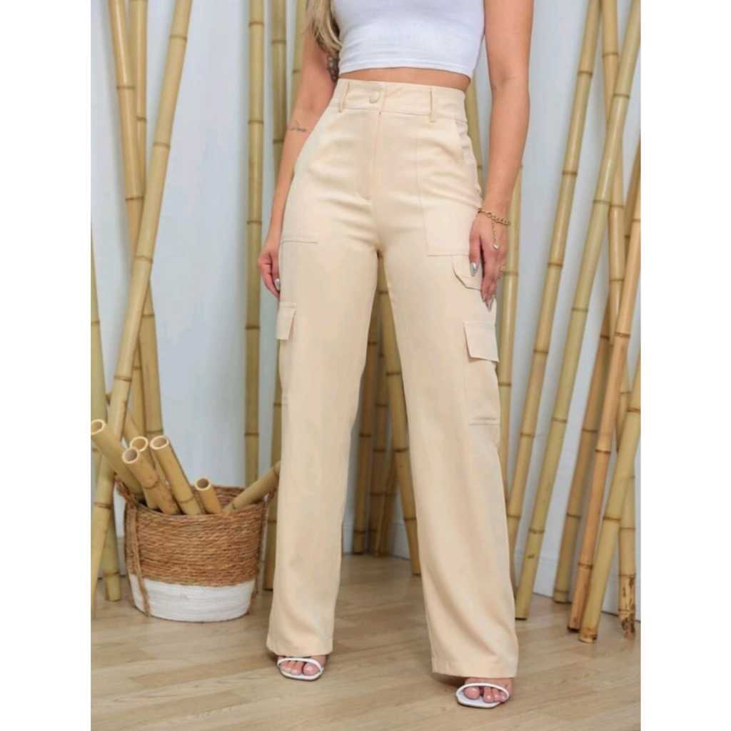 Calça Pantalona Feminina em Alfaiataria Cargo Casual Para Trabalhar ACOMPANHA CINTO