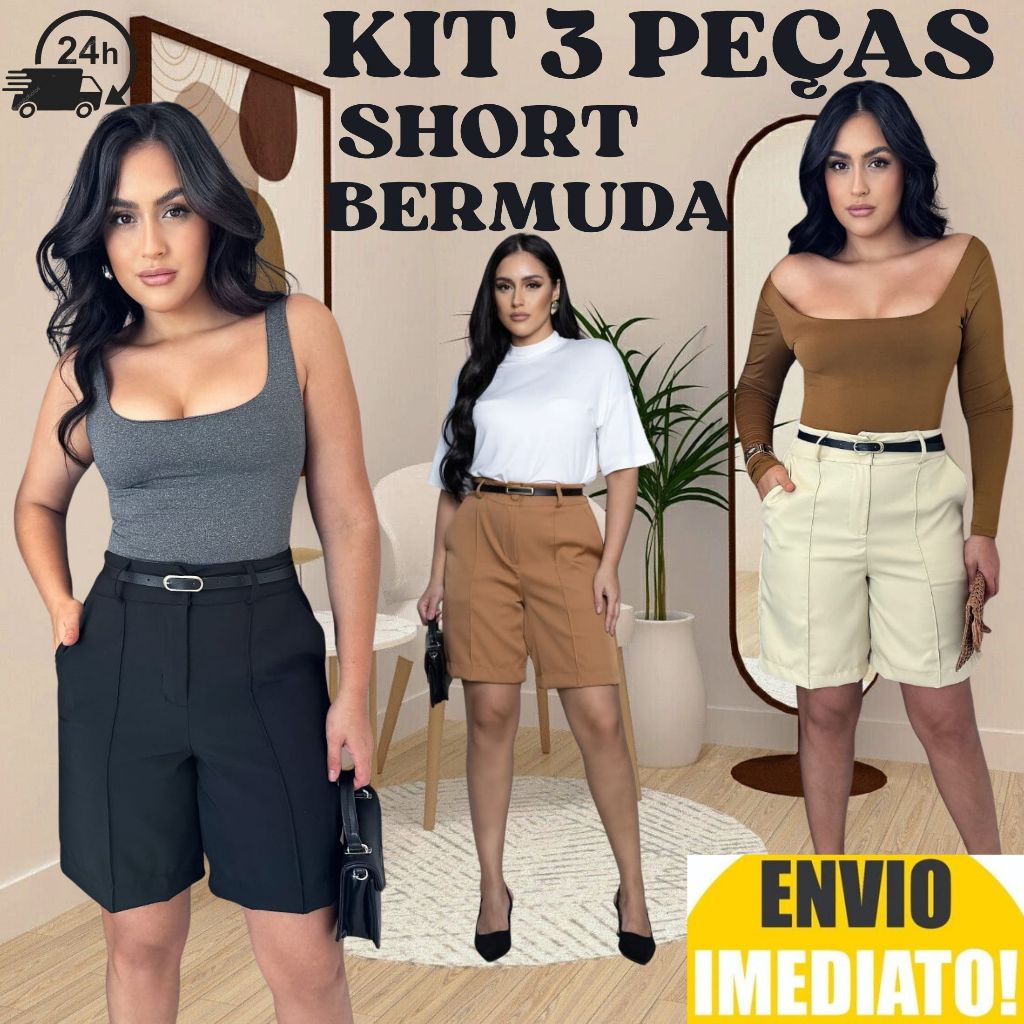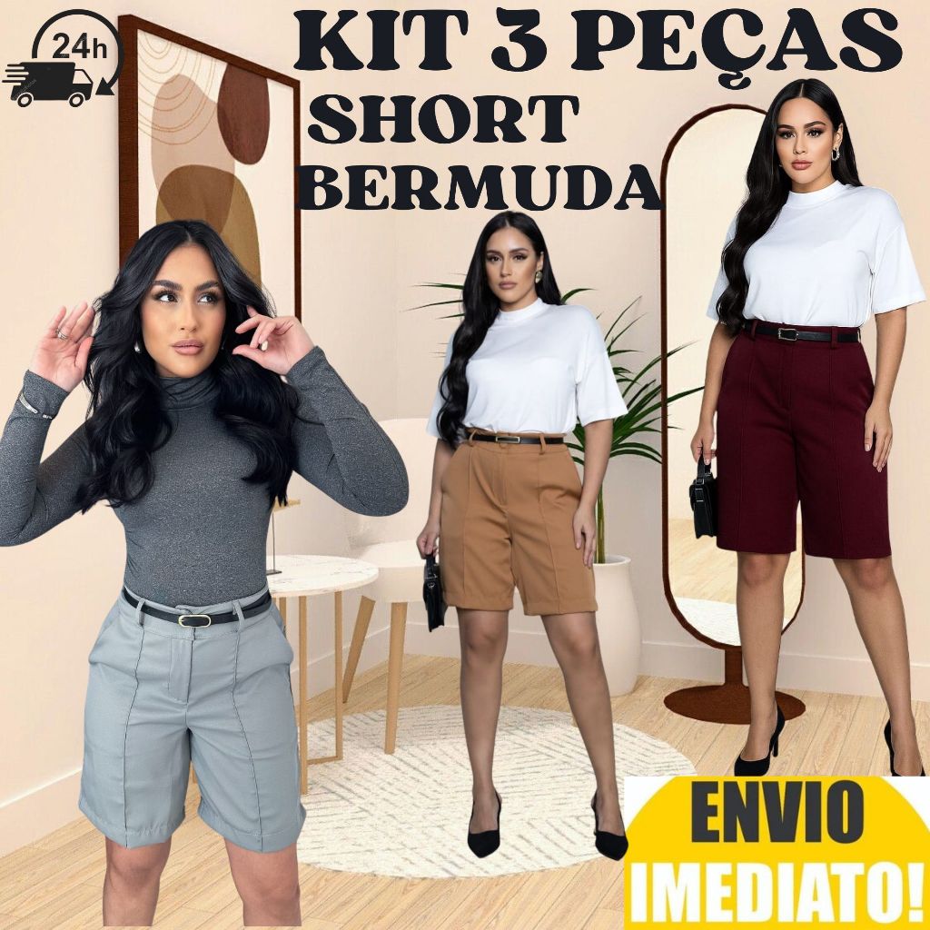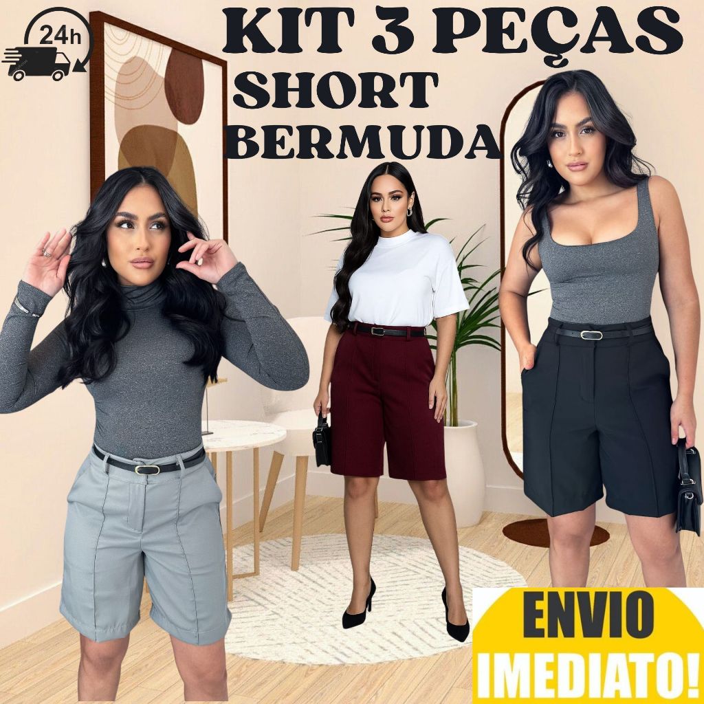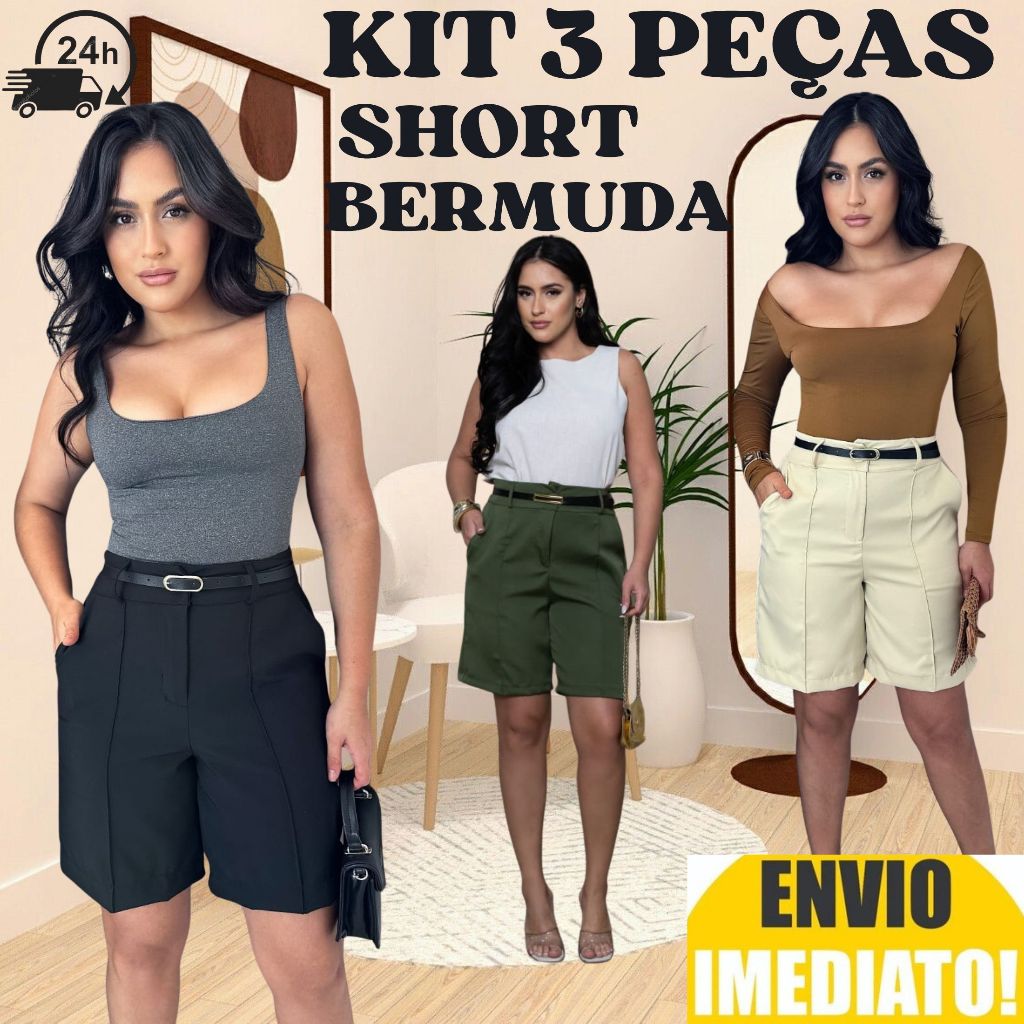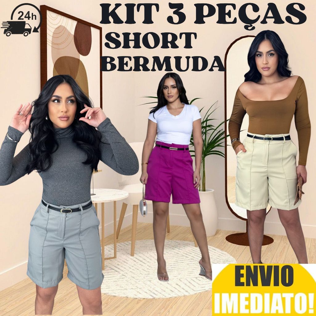 Kit 3 Short Bermuda Alfaiataria Feminino ENVIO IMEDIATO