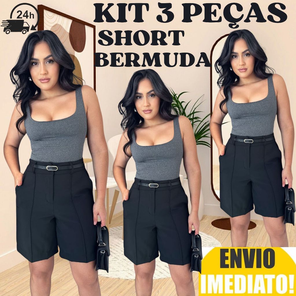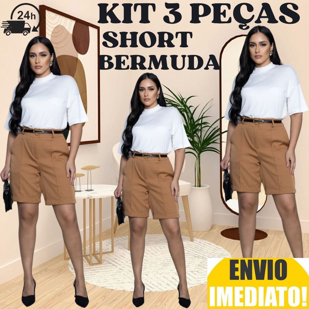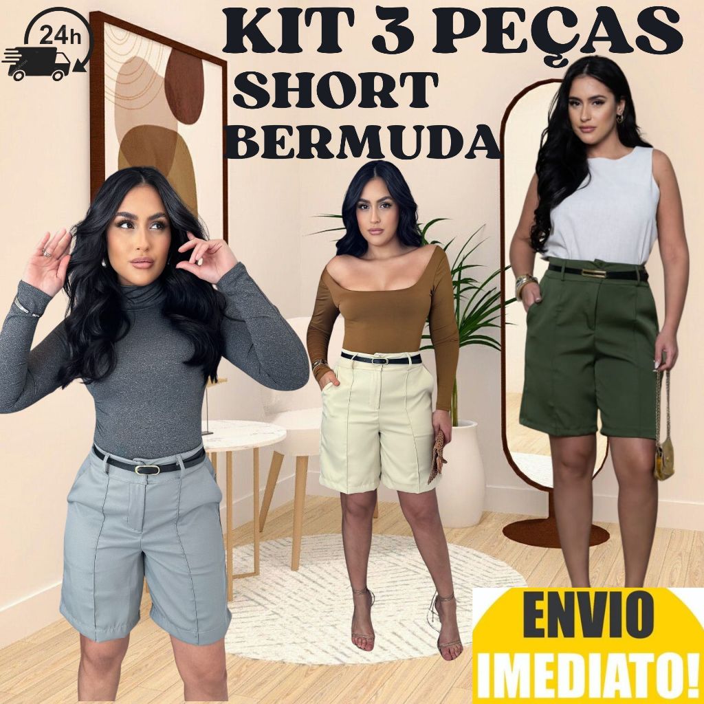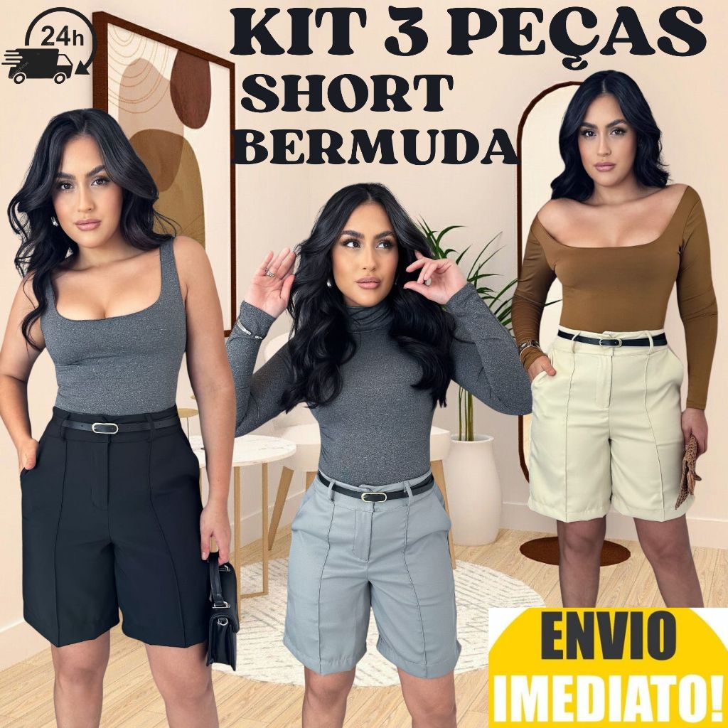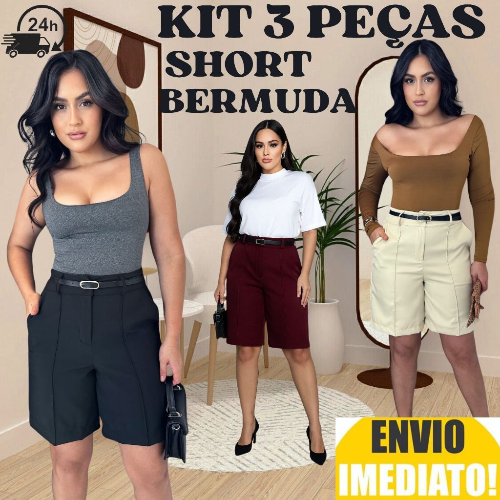 Kit 3 Short Bermuda Alfaiataria Feminino ENVIO IMEDIATO