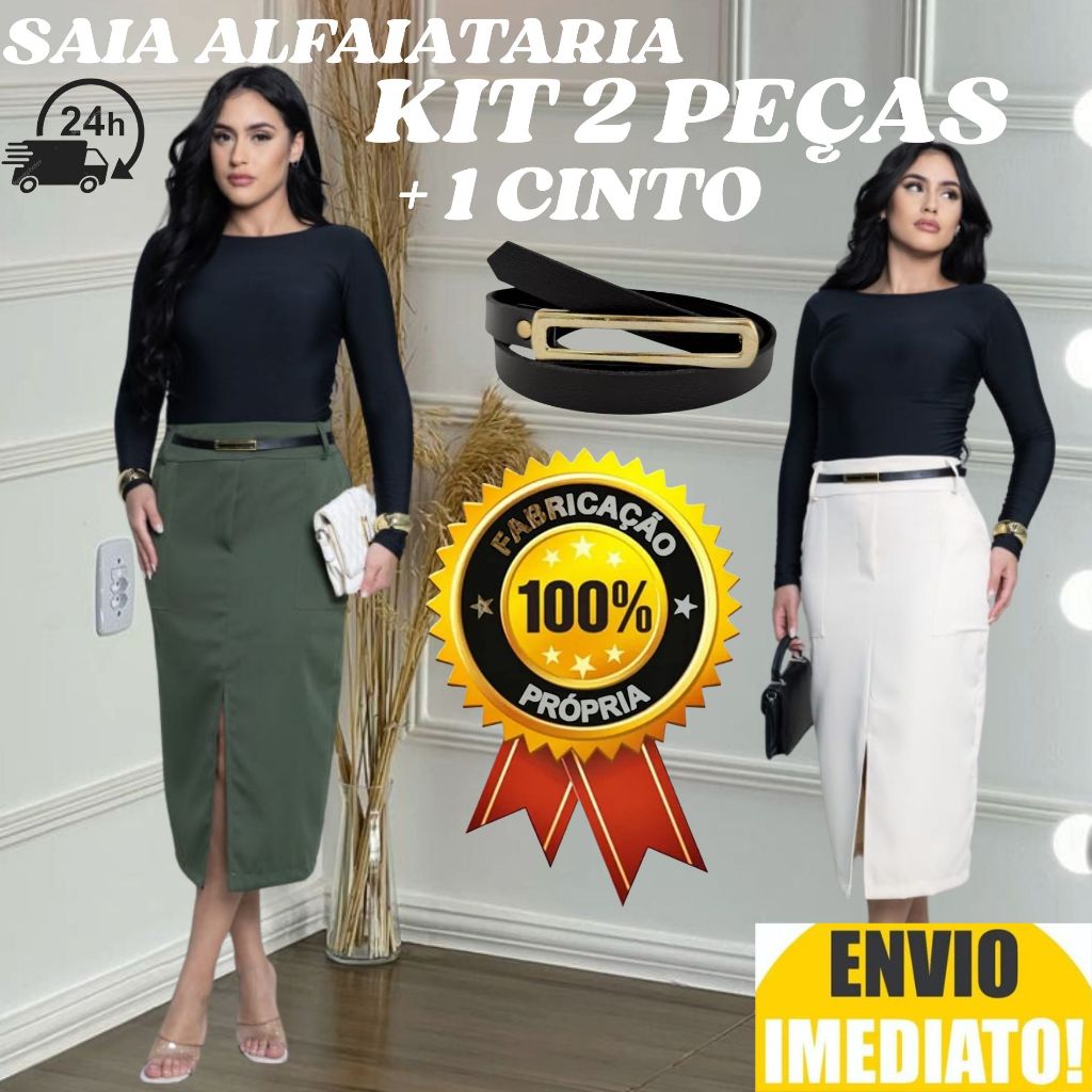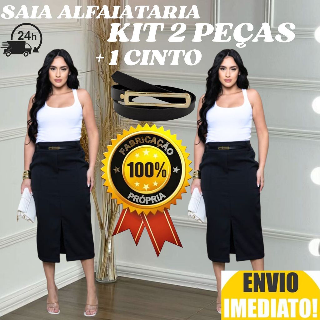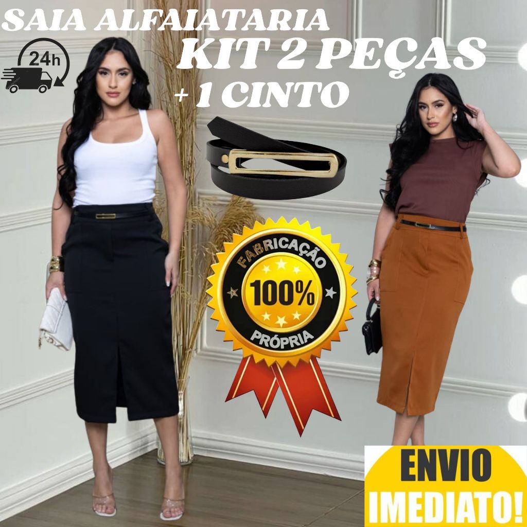 kit 2 Saia Longa Feminina Alfaiataria ACOMPANHA CINTO