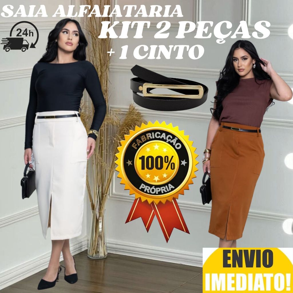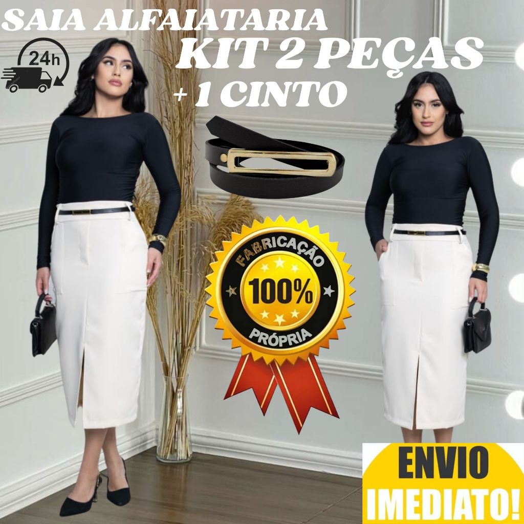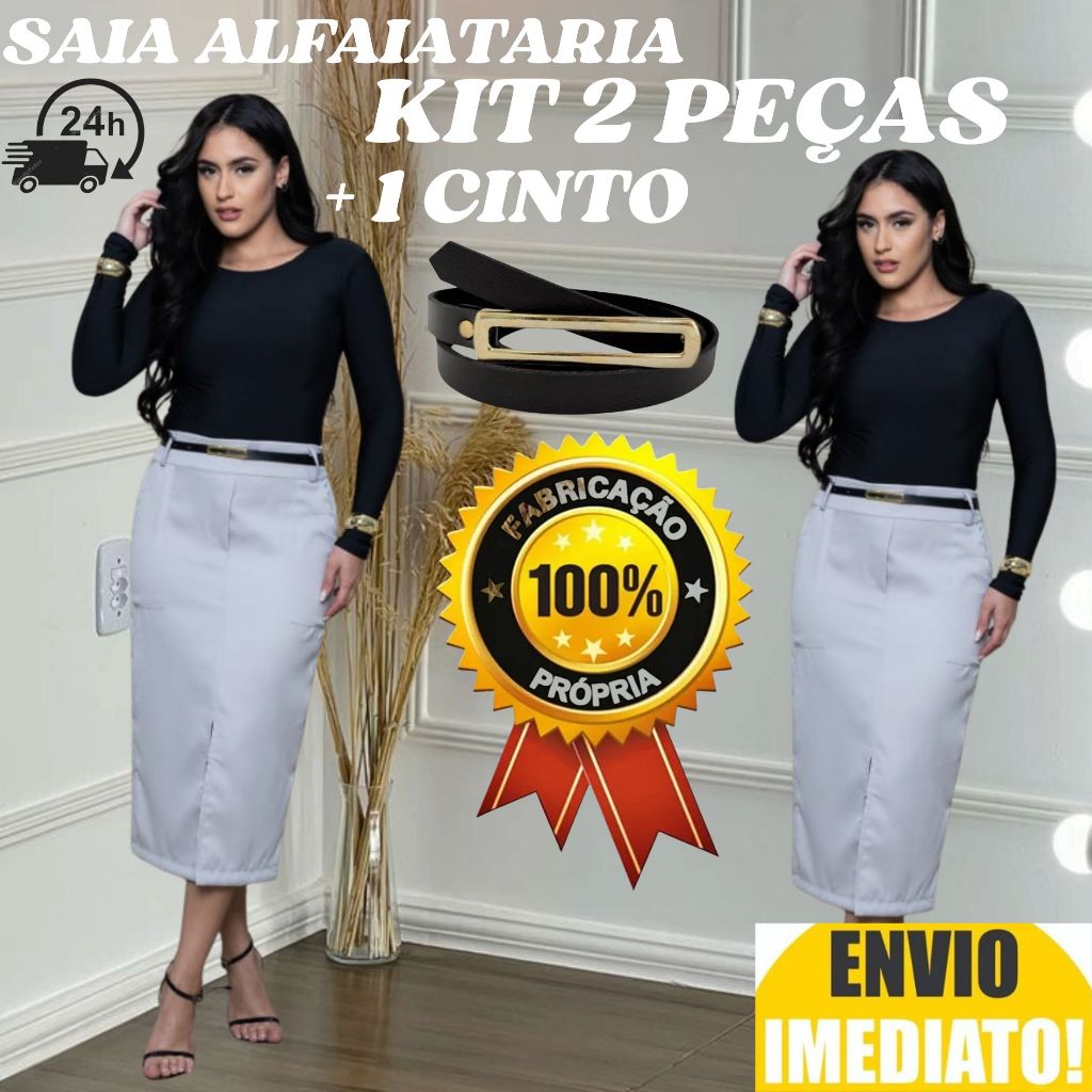 kit 2 Saia Longa Feminina Alfaiataria ACOMPANHA CINTO