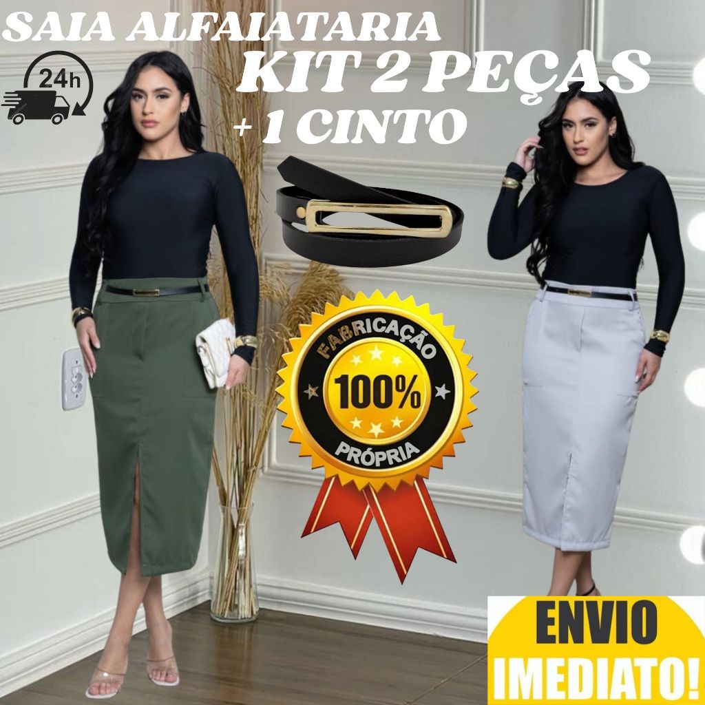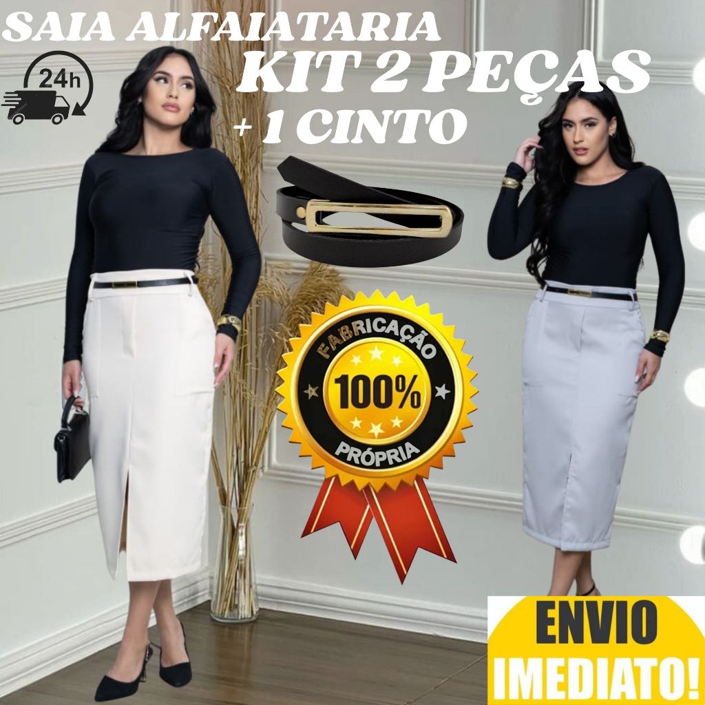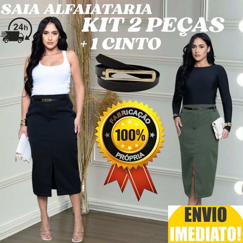kit 2 Saia Longa Feminina Alfaiataria ACOMPANHA CINTO